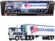 • Brand new 1/64 scale diecast model of Kenworth K100 COE Flattop with 40' Vintage Reefer Refrigerated Trailer "Alexander Trucking" Blue and White 36th in a "Fallen Flag Series" die cast model by DCP/First Gear.