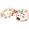 2. Set comes complete with engine, coaches, a bridge, buildings, city vehicles (police cruiser, ambulance, cars, buses), road signs, trees, and figurines