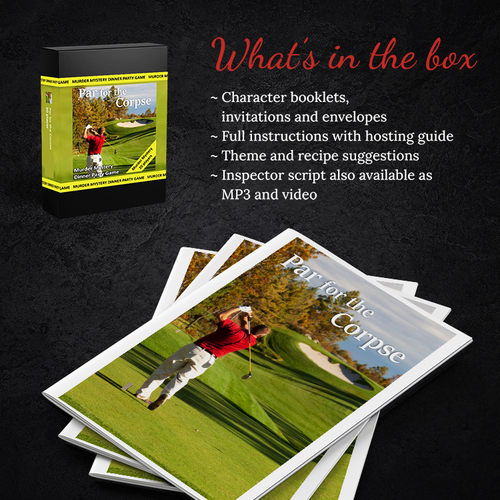 If you are looking for award winning entertainment to amuse your friends and family then look no further. Our incredibly fun murder mystery "Par for the Corpse" creates some golf themed fun as you and your friends try to work out who killed Tommy Flump. PLOT: The Flump Fernberry Links Golf Resort is situated on the windswept western Scottish coast. It consists of a newly refurbished, 5-star hotel housed in a historic country house and an historic links course. This year, its new American owner, Tommy Flump, has held the First Annual Flump Championship as a way to celebrate all the improvements and his plans for the future. Unfortunately for those attending tonight’s Tournament Dinner, someone has committed a major penalty. Tommy Flump has just been found dead - hit over the head by his own solid gold trophy. Who on earth could’ve committed such a crime?