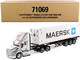 • Brand new 1/50 scale diecast model of Peterbilt 579 Day Cab Truck Tractor with Flatbed Trailer and 40' Refrigerated Sea Container "Maersk" Legendary Silver and White "Transport Series" die cast model by Diecast Masters.