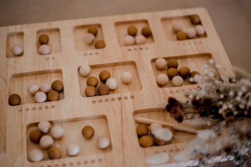 A reversible Counting board designed to encourage and enhance numeracy skills. One side features 1-10 numbers and corresponding words, the other features 10 spots to place loose parts with enough room for each number. With a simple flip you can go from number formation to counting. This board includes a wooden tracing stick.