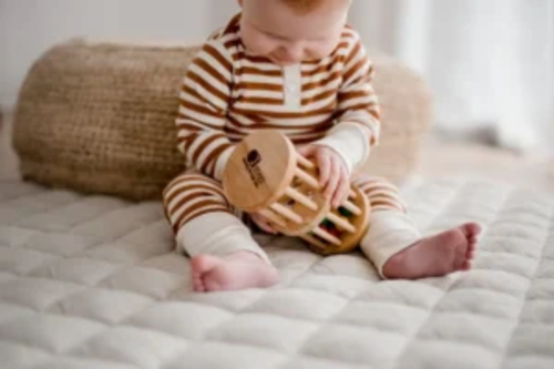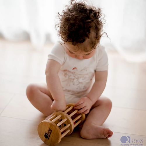 This wooden rainmaker is a musical instrument that imitates the sound of rainfall. The rainmaker is held vertically and gently tilted back and forth, causing the objects inside to fall through the tube and create a sound that resembles the patter of raindrops. This is the perfect toy for those curious thinkers!