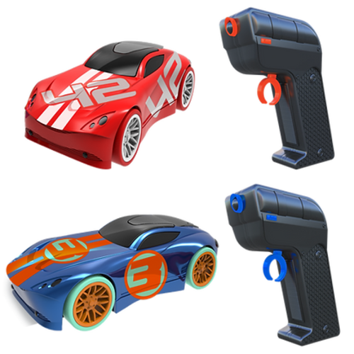 Remote controlled cars can be driven at variable speeds, each car has long lasting, replaceable, lithium polymer batteries.
