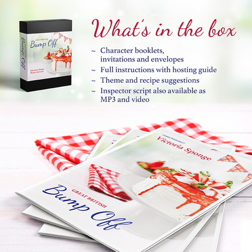 If you are looking for award winning entertainment to amuse your friends and family then look no further. Red Herring Games award winning murder mystery "Great British Bump Off" creates some cake themed fun as you and your friends try to work out who killed the bake-off judge Shaw G Bottom! PLOT: Tension is high inside the big white tent because it’s time for this year’s bakers to face judgment and elimination. But wait! Stop those timers! Our esteemed judge, Shaw G. Bottom has just been discovered dead in the judge’s tent. The bread round just turned into the dead round.