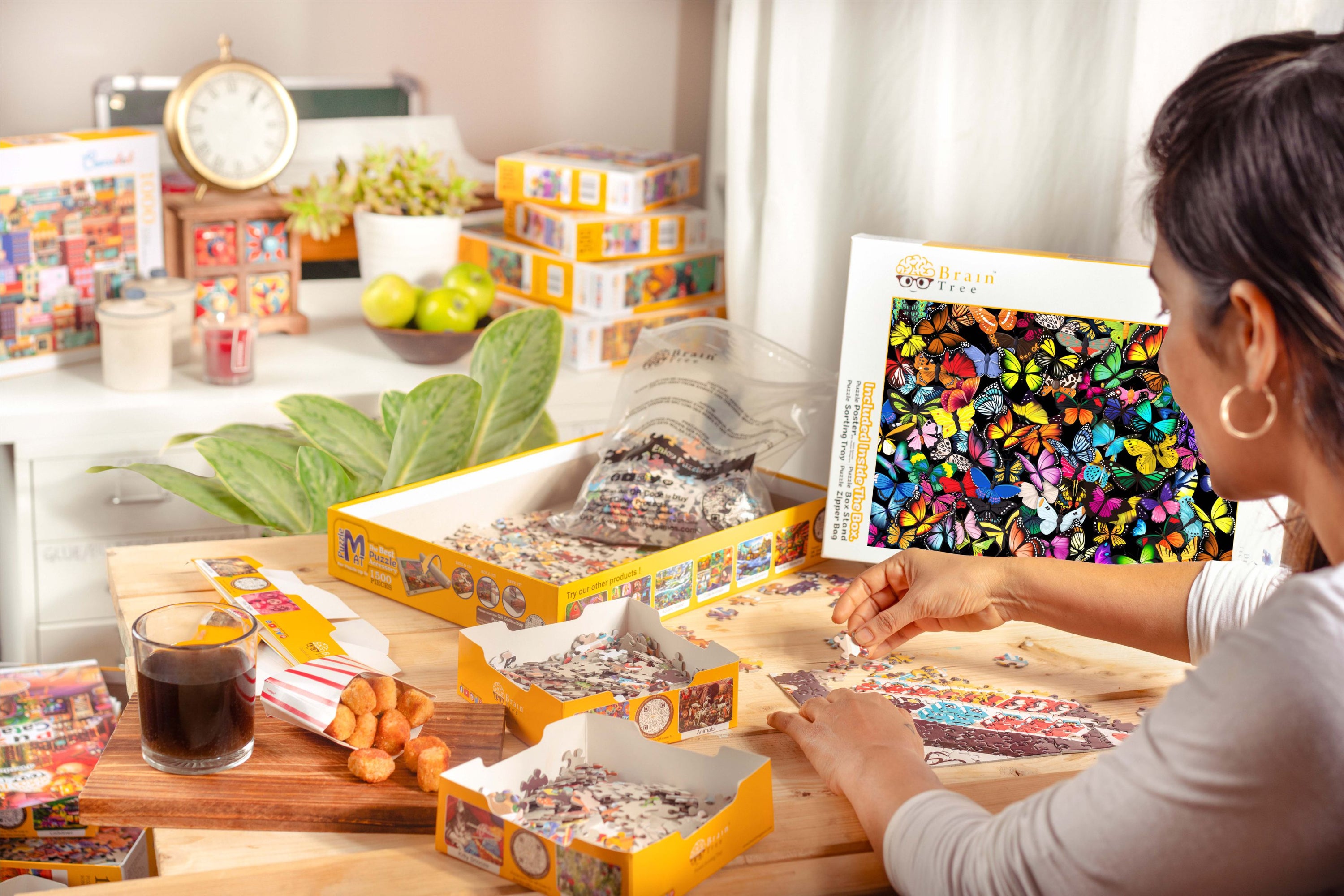 Each piece of this jigsaw puzzle is uniquely shaped, thanks to our innovative random cut technology. This ensures that no two pieces are alike, enhancing the puzzle-solving experience and making it more memorable. The intricate design of the butterflies not only provides a challenge but also offers a beautiful display once completed.