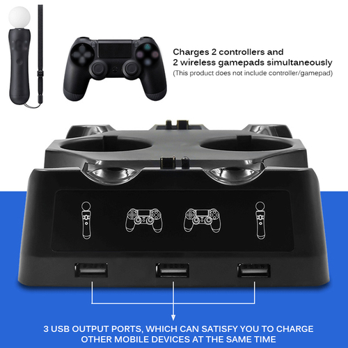 The VR controller charger is designed with three USB interface for your other digital devices charging.