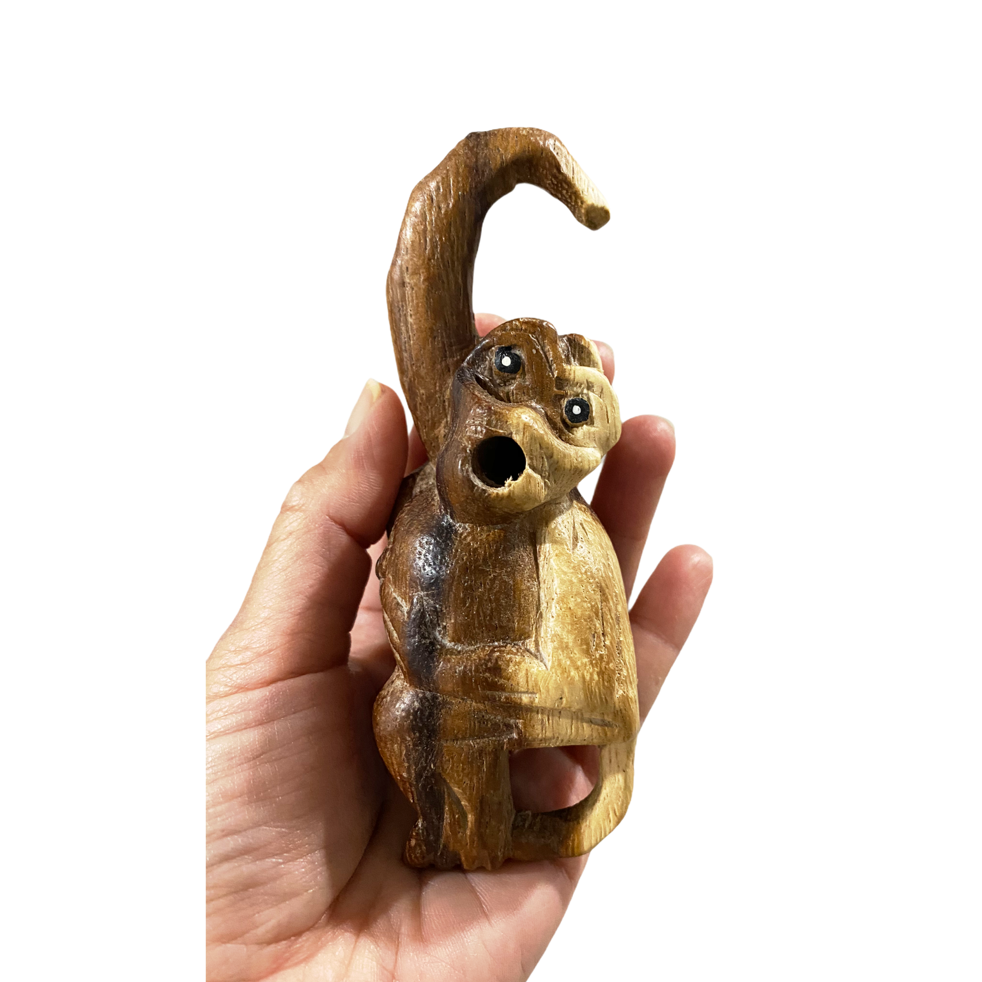 Introducing the Wooden Musical Whistle Monkey Percussion Instrument, a delightful and whimsical addition to any musical collection. Measuring 1.5" x 1.5" x 5" and weighing just 0.11 lb, this charming wooden monkey whistle is not only a fun toy but also a beautifully crafted piece of art. Hand-carved by skilled artisans in Thailand, each monkey whistle showcases intricate detailing that brings this playful character to life.