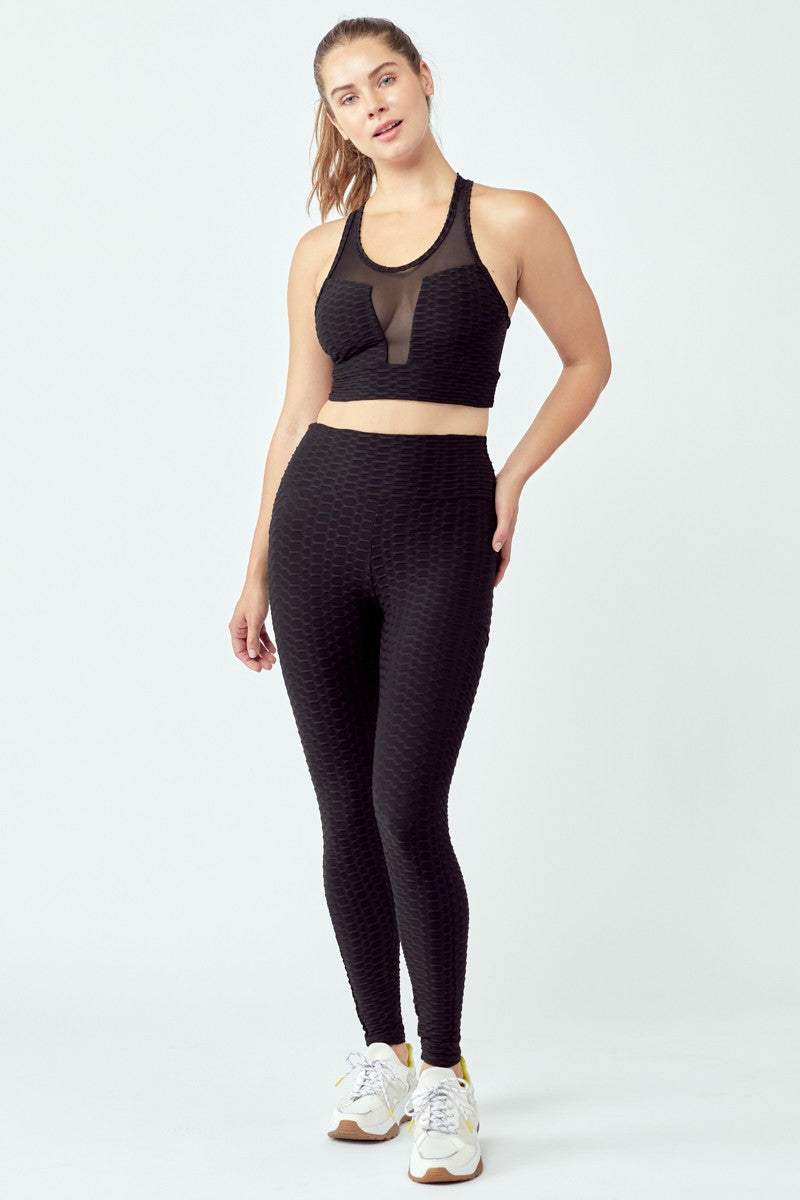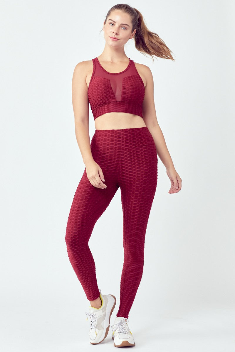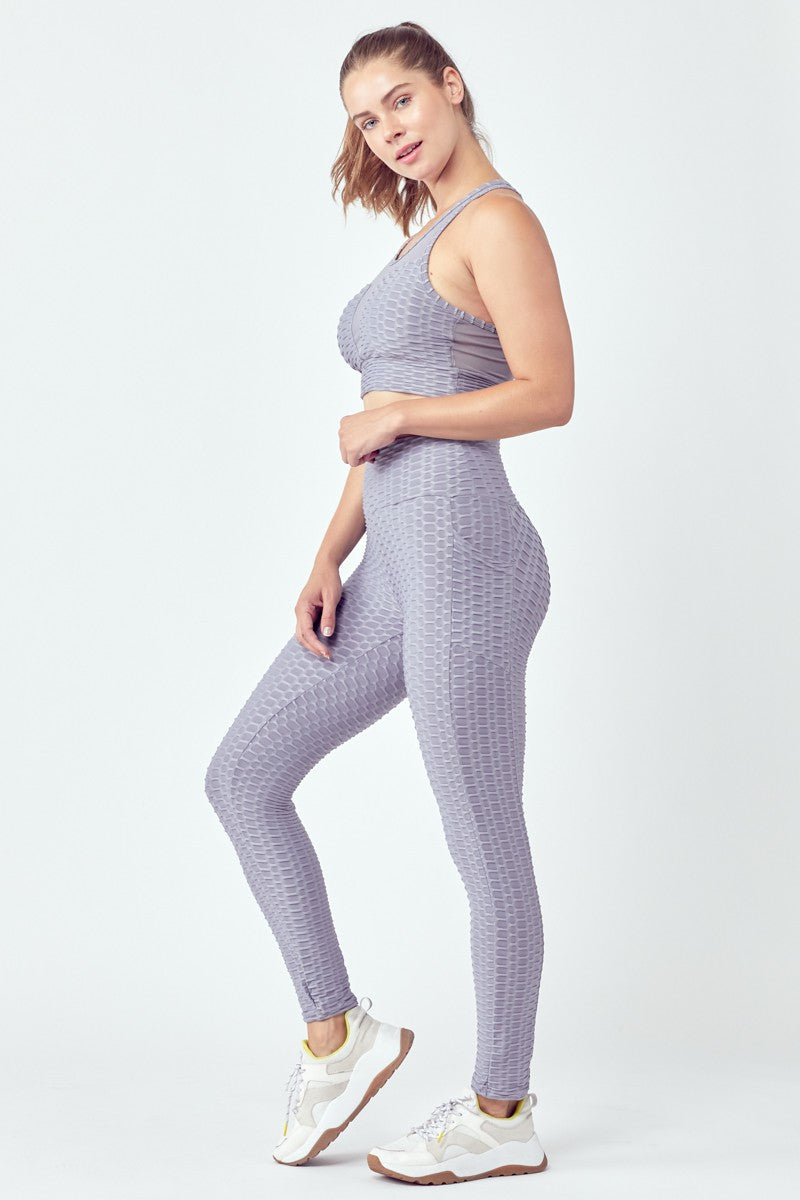 Stay ahead of the fashion curve with our trendy activewear set. The 3D textured design is not only functional but also stylish, making it a must-have for your workout wardrobe. The set is available in various colors, allowing you to express your personal style while staying active. Pair it with your favorite sneakers and accessories for a complete look that transitions seamlessly from the gym to the street.