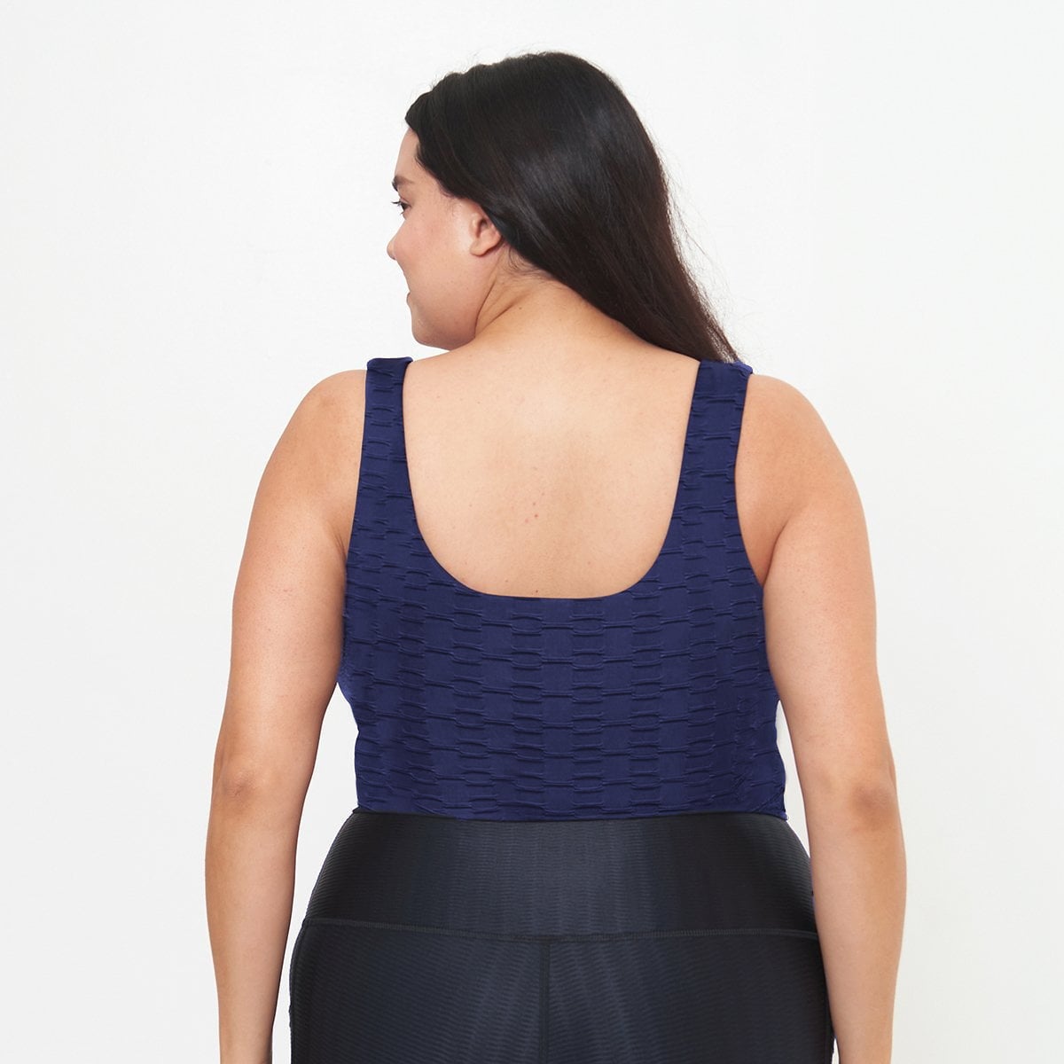 In summary, the Lola Getts® Fitted Tank with Built-In Bra in Navy Links Pattern is an essential piece for anyone who values comfort, support, and style in their activewear. With its breathable fabric, built-in bra, and flattering design, this tank is sure to become a favorite in your workout wardrobe.
