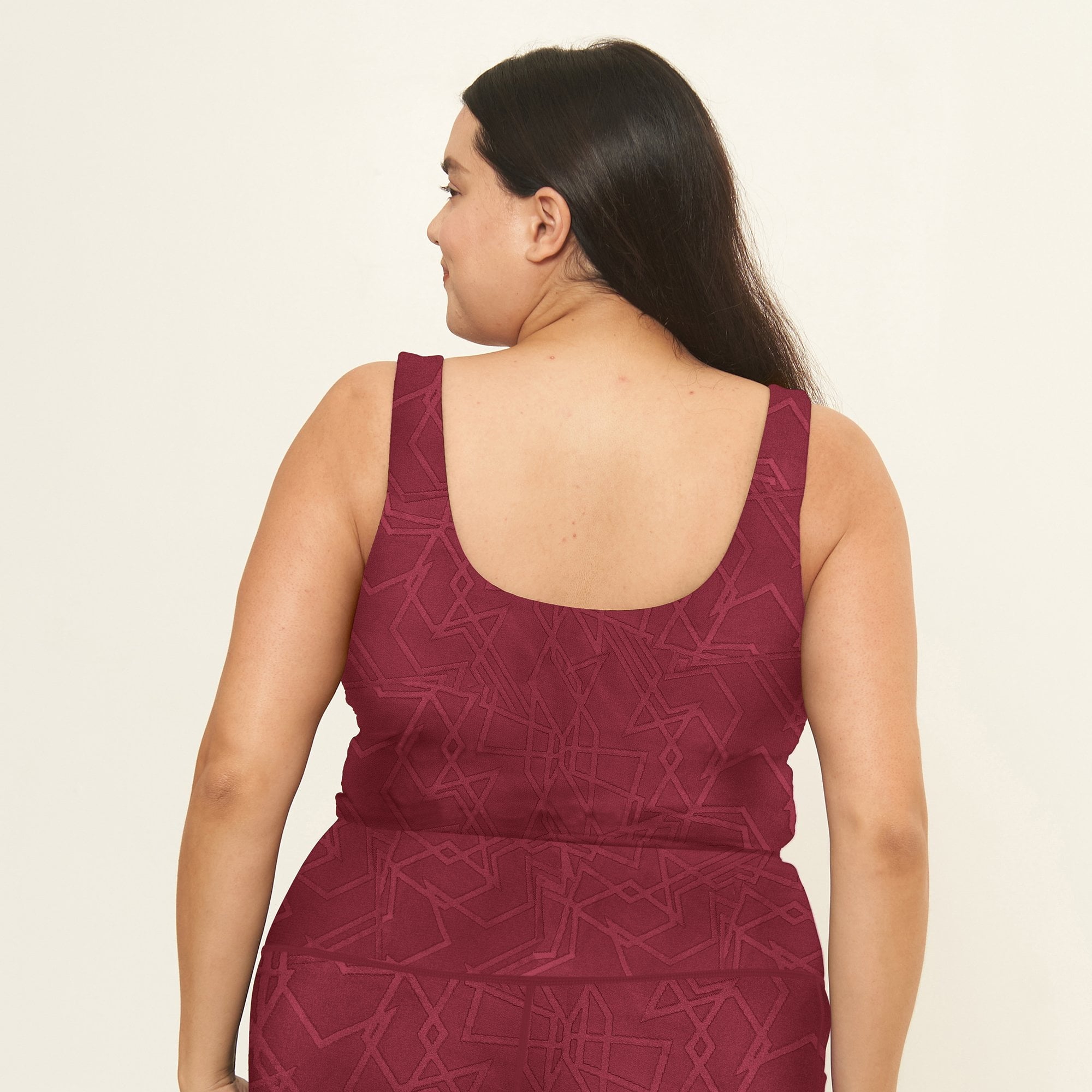 The pomegranate linear pattern adds a touch of style to your activewear collection. This eye-catching design not only looks great but also flatters your figure. The smooth, contouring fabric hugs your body in all the right places, enhancing your silhouette while providing the flexibility you need for various activities.