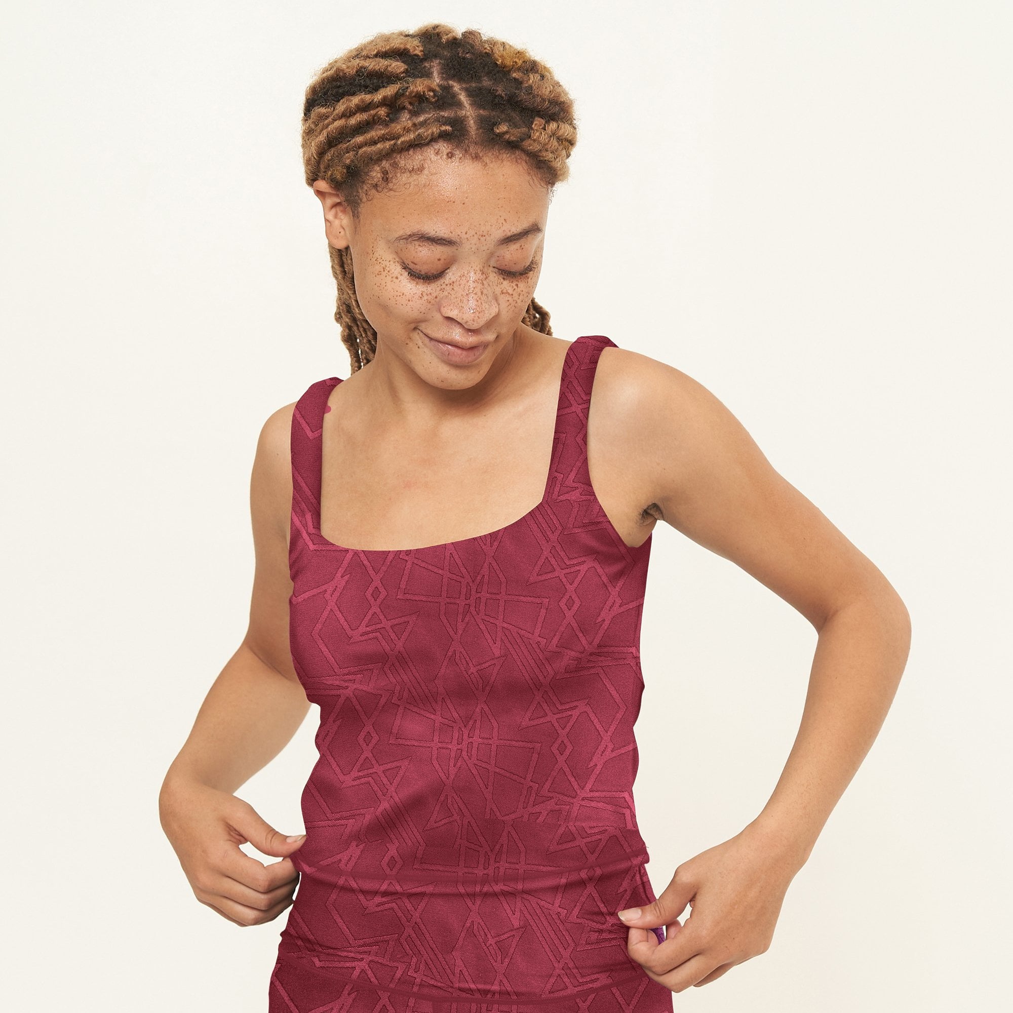 The Lola Getts® Fitted Tank with Built-In Bra in a vibrant pomegranate linear pattern is the perfect blend of style and functionality. This activewear top is designed to provide comfort and support during your workouts, making it an essential addition to your fitness wardrobe. Whether you're hitting the gym, going for a run, or practicing yoga, this tank is versatile enough to meet your needs.