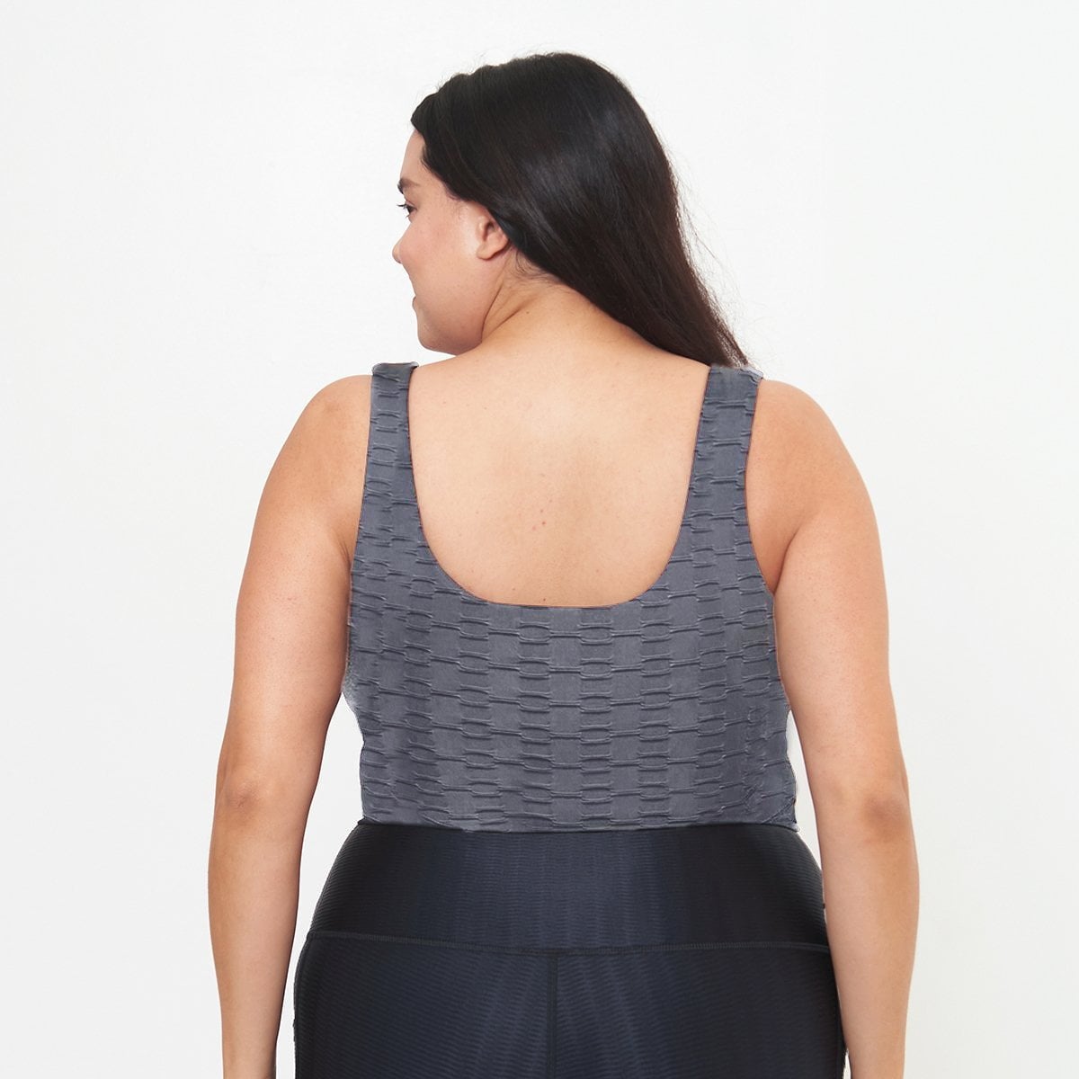 In summary, the Lola Getts® Fitted Tank with Built-In Bra in Slate Links Pattern is an essential addition to your activewear collection. With its combination of comfort, support, and style, it is designed to meet the needs of women who lead active lives. Experience the difference of high-quality activewear that not only performs well but also enhances your everyday style.