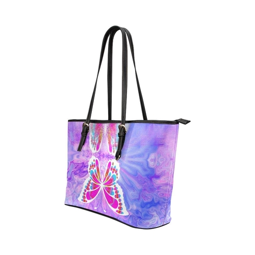 Introducing the Large Leather Tote Shoulder Bag in a stunning Purple and Black Gradient with a beautiful butterfly design. This bag is not just a fashion statement; it is a versatile accessory that complements your personal style while providing functionality. Whether you are heading to work, school, or a special occasion, this tote bag is designed to meet your needs.