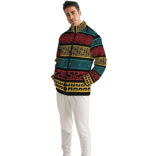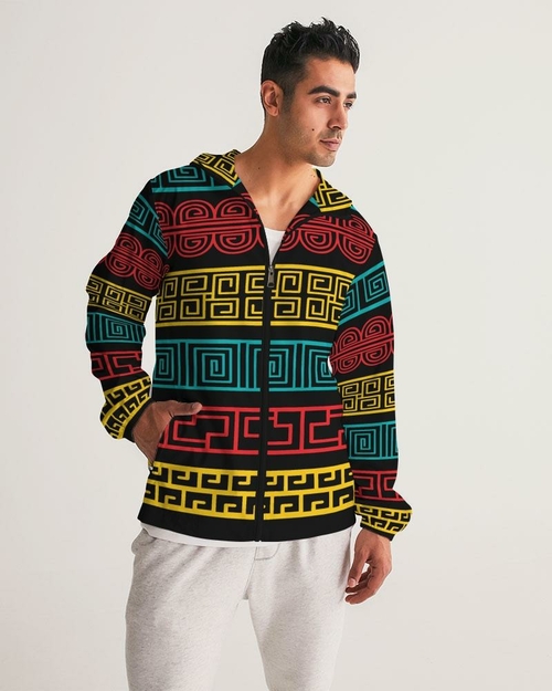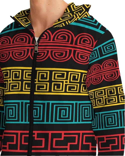 The Men's Hooded Windbreaker features a vibrant and colorful print that not only adds a pop of personality to your outfit but also ensures you stand out in any crowd. The unique design is printed, cut, and handmade, showcasing craftsmanship that you can trust. Whether you're heading out for a casual day or an adventurous outing, this jacket is sure to elevate your style.