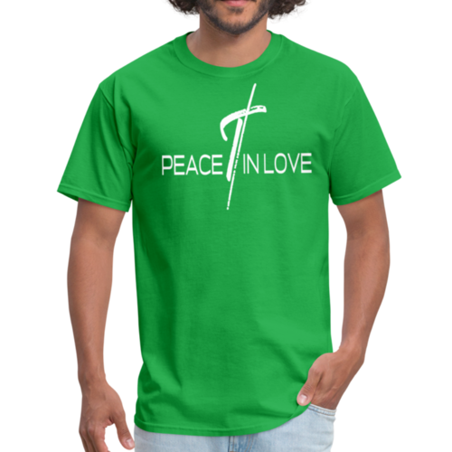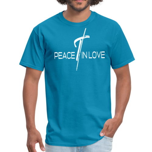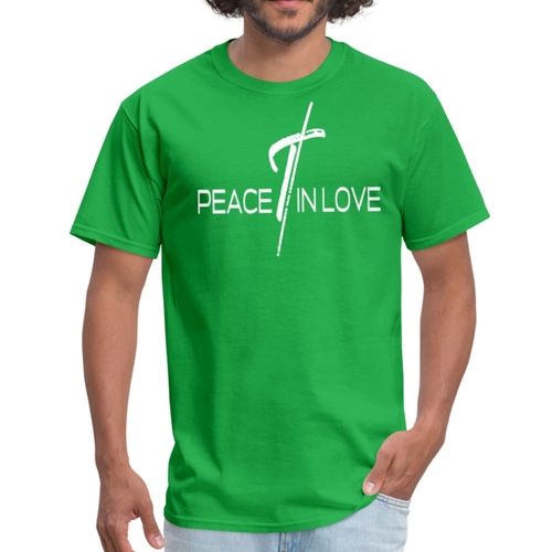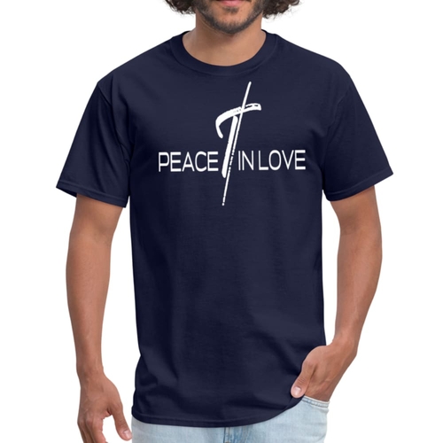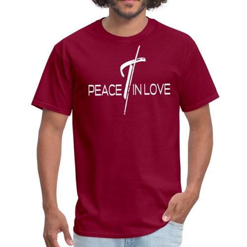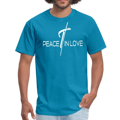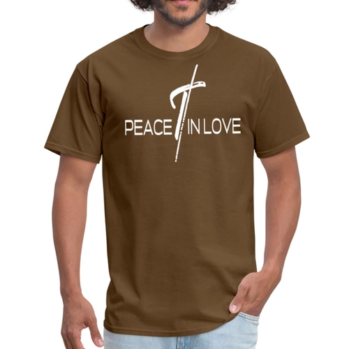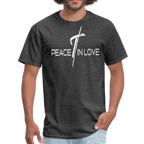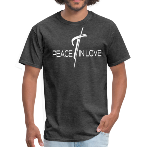The Peace In Love graphic adds a unique touch to this classic tee. It’s not just a shirt; it’s a statement piece that reflects your personality and values. Pair it with your favorite jeans or slacks for a quick, easy, and stylish look that’s perfect for any occasion.