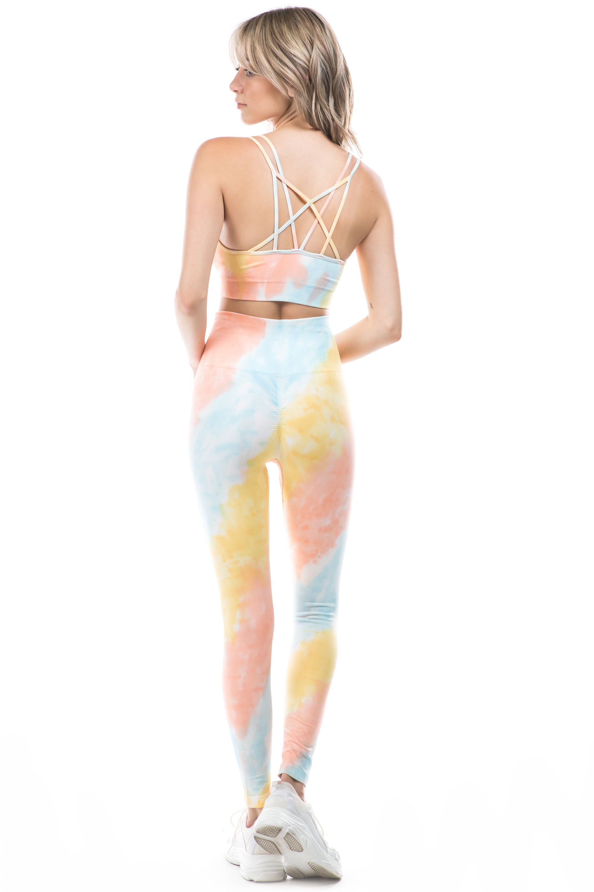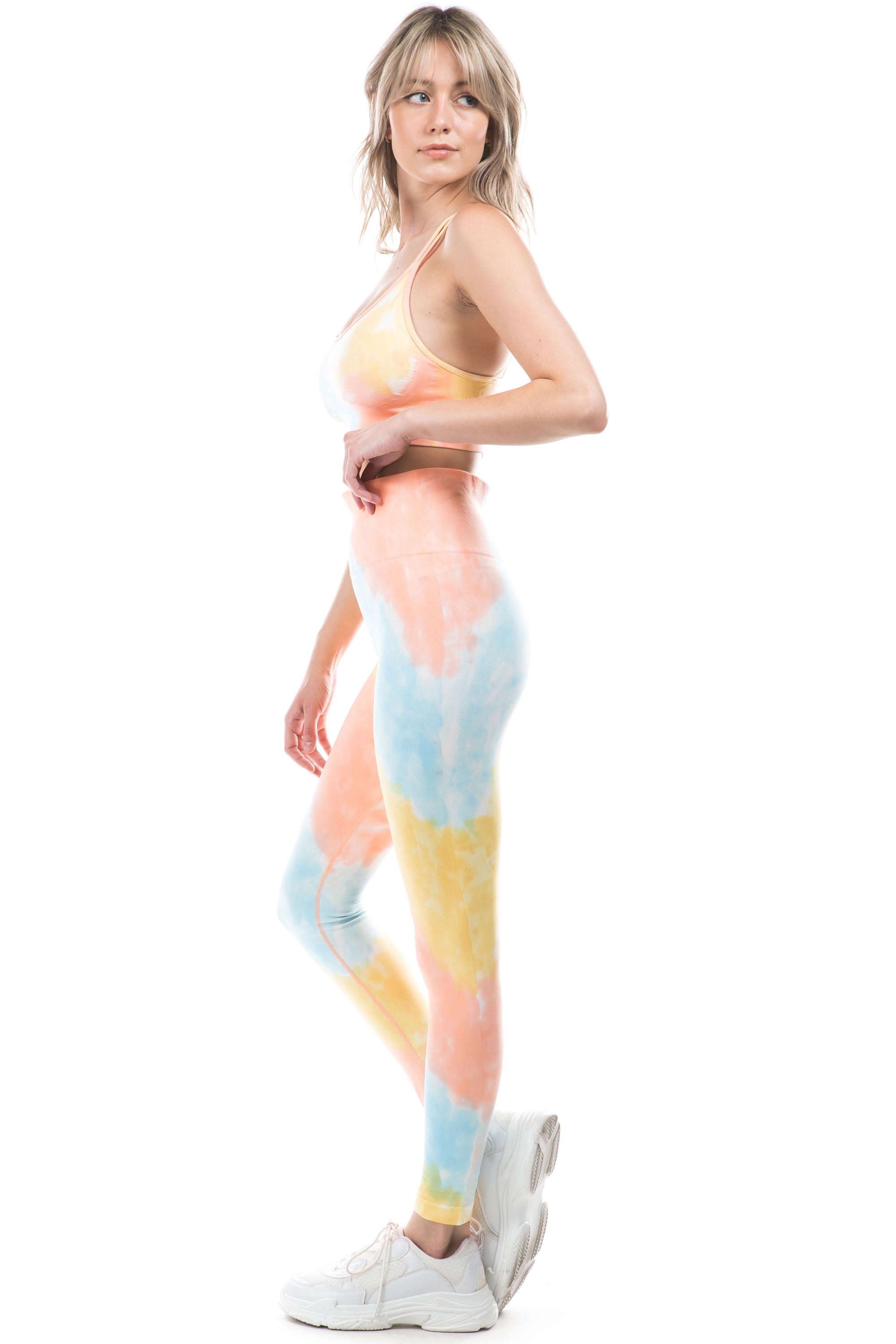 The Tie-Dye Strappy Back Active Set Peach is the perfect blend of style and functionality, designed for those who want to look good while staying active. This vibrant active set features a colorful tie-dye pattern that adds a fun twist to your workout wardrobe. The set includes a matching tie-dye active bra and high-waisted leggings, making it a complete outfit for any fitness enthusiast.