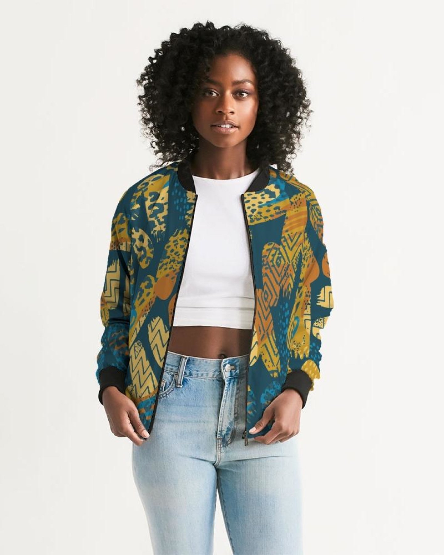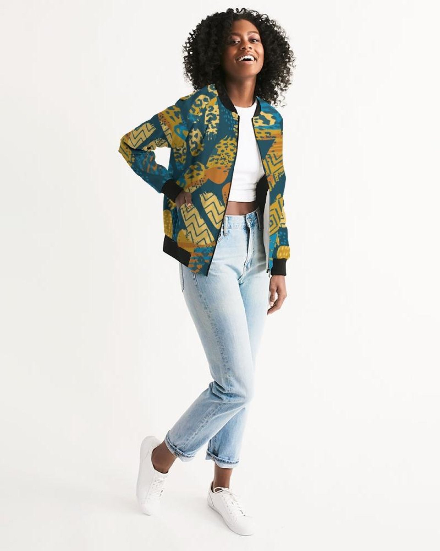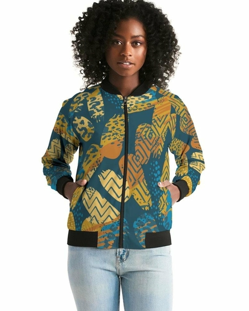 In summary, the Tribal Blue Abstract Style Women's Bomber Jacket is a must-have for anyone looking to enhance their wardrobe with a stylish and functional piece. Its lightweight fabric, unique design, and versatile nature make it suitable for a variety of occasions, ensuring that you always look your best.