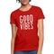 Introducing our stylish Womens T-shirt, featuring a unique Good Vibes graphic design that is sure to elevate your casual wardrobe. This classic tee is not just a piece of clothing; it's a statement of positivity and comfort. Made from high-quality materials, this shirt is perfect for quick outfits that require minimal effort but maximum style.