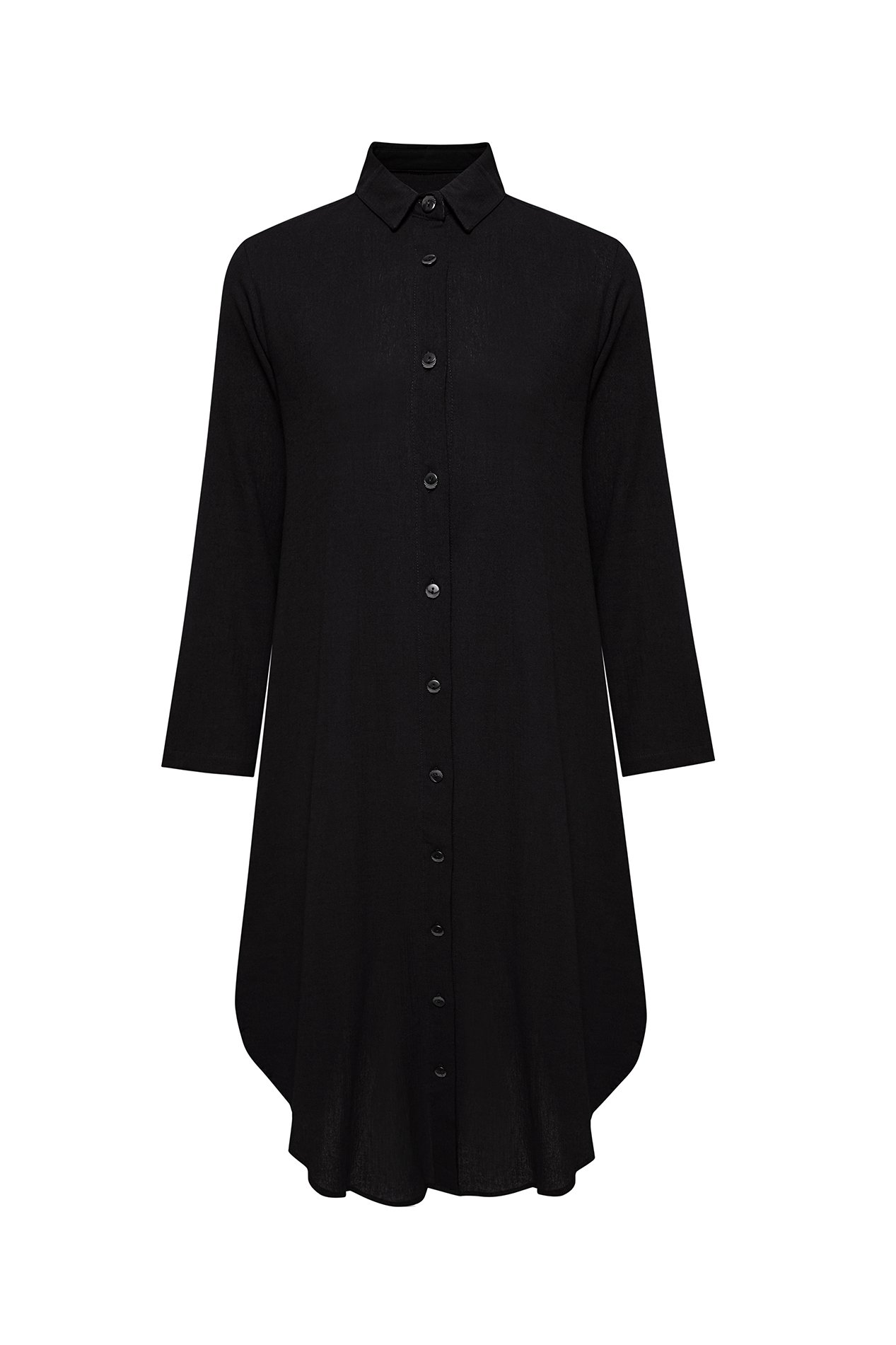 In summary, the Della Shirt Dress in Black is a must-have for anyone looking to enhance their wardrobe with a chic and comfortable option. With its breathable fabric, adjustable features, and quality construction, this dress is sure to become a favorite in your collection.