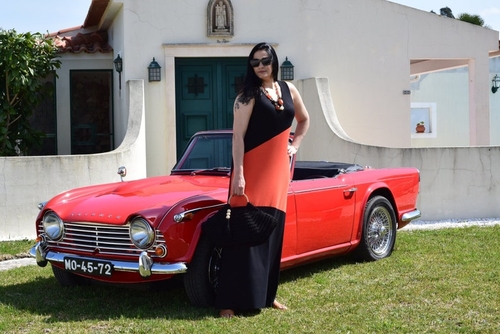This sleeveless dress with geometrical design on the front and plain back has side cuts on both sides of the dress up to the knee. It´s made of elastic fine jersey (95% viscose, 5% elastane) and suits any day or evening occasion in spring and summer.