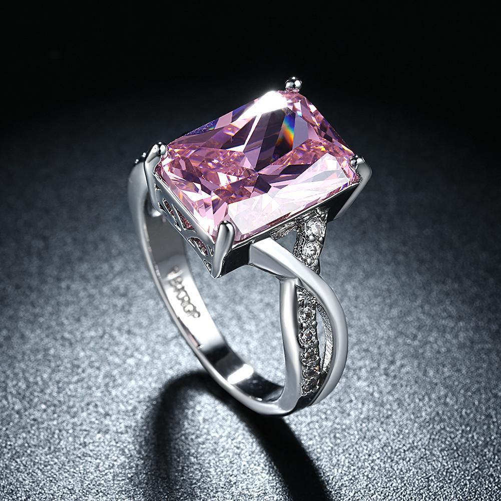 Each ring in this set is meticulously crafted with a crystal pave design that enhances the overall sparkle and brilliance of the pink crystal. The emerald cut shape is not only stylish but also timeless, making it a versatile addition to your jewelry collection. The use of brass as the base metal ensures durability, while the 18K white gold plating adds a luxurious finish that is both eye-catching and elegant.