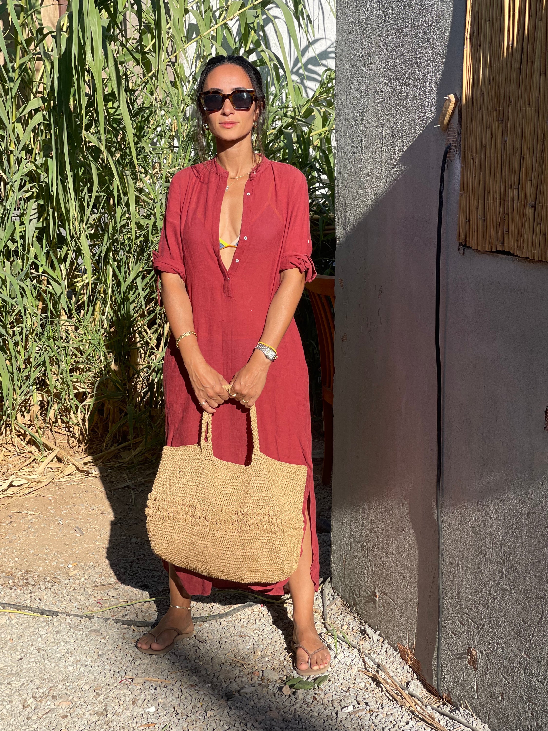 One of the standout features of the Mykonos Tote Bag is its spacious interior. Perfectly sized to hold all of your daily essentials, this bag can easily accommodate your wallet, phone, sunglasses, and even a light sweater for those cooler evenings. The open design allows for easy access to your belongings, making it a practical choice for busy days.