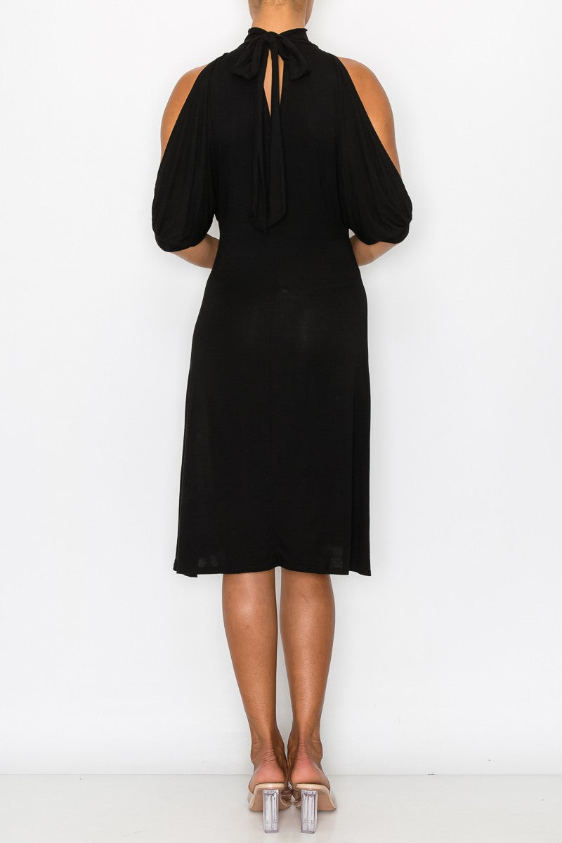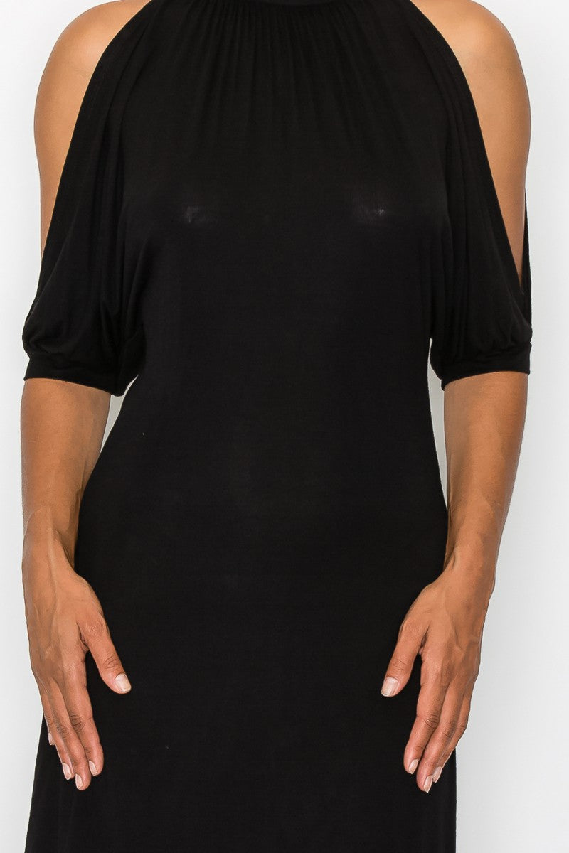 Introducing the Open Shoulder Sexy Back Dress in Black, a stunning addition to your wardrobe that combines style and comfort effortlessly. This dress features an open shoulder design that adds a touch of sophistication while allowing for breathability and ease of movement. Whether you're heading out for a casual brunch or a night out on the town, this dress is the perfect choice to make you feel confident and chic.
