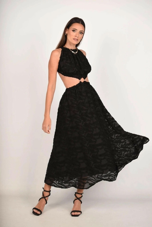The Out Of Your Reach Maxi Dress is a stunning addition to any fashion-forward wardrobe, designed specifically for warm-weather events. This dress combines unique texture and stylish cutouts, making it a standout choice for outdoor gatherings, weddings, or summer parties. Crafted from lightweight, non-stretch flocked jacquard fabric, it offers both comfort and elegance, ensuring you look your best while feeling at ease.