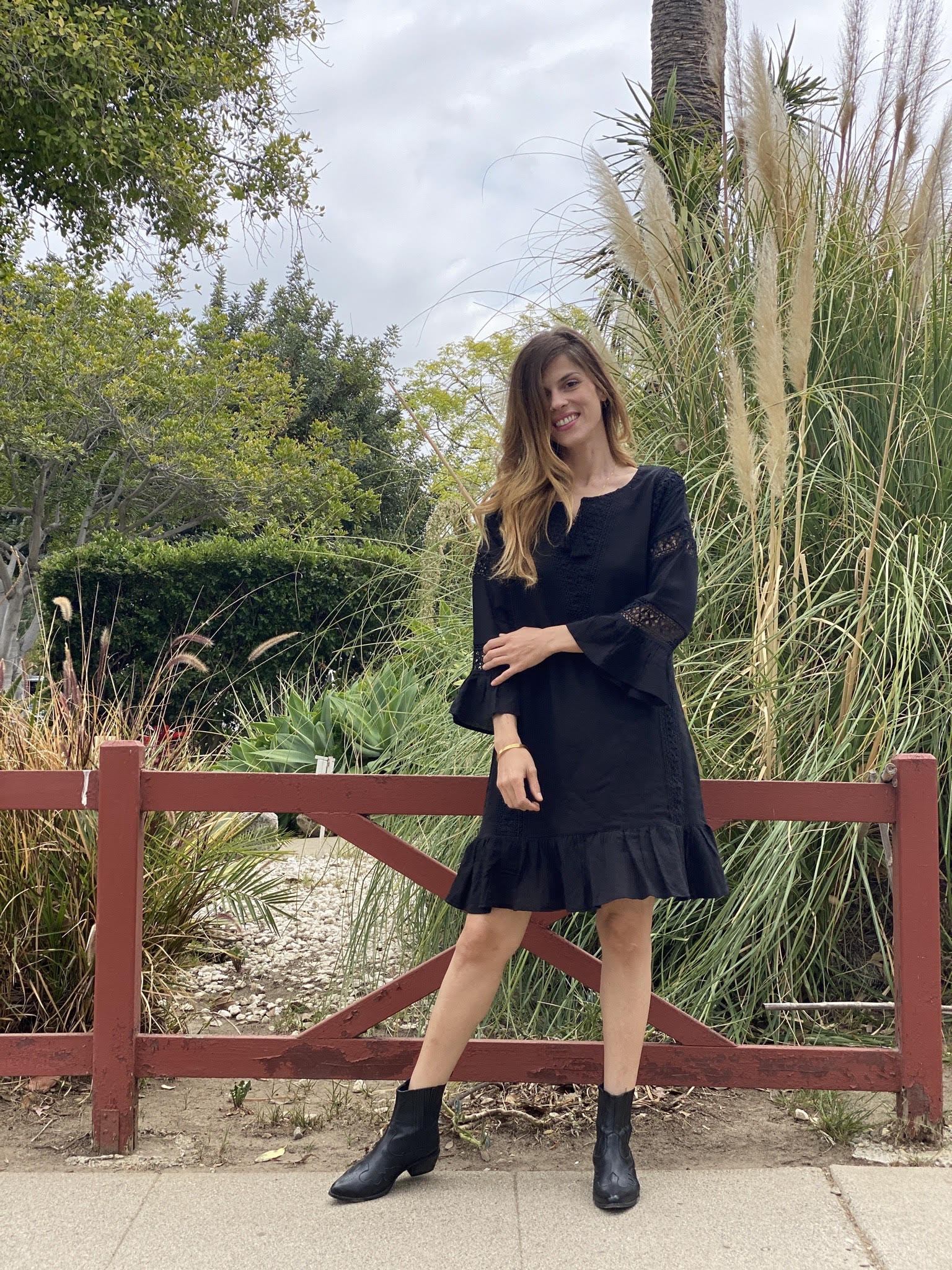 The PARADISO MINI DRESS in black is a stunning addition to any wardrobe, combining elegance and comfort in one beautiful piece. This dress is designed with romantic lacework that adds a touch of femininity, making it perfect for various occasions, from casual outings to special events. Made from breezy 100% cotton-gauze, this dress is not only stylish but also incredibly comfortable, allowing you to move freely while looking chic.