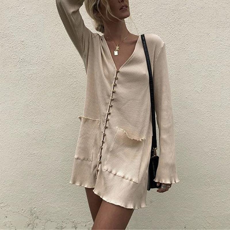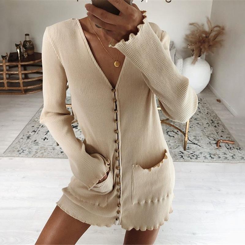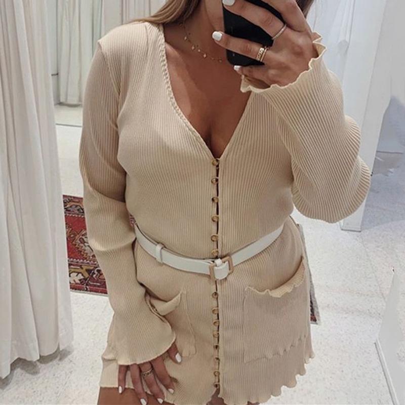 In summary, the Sexy V Neck Knitted Long Sleeve Mini Dress is a stylish and comfortable choice for any autumn occasion. With its trendy design and versatile styling options, this dress is sure to become a staple in your wardrobe.