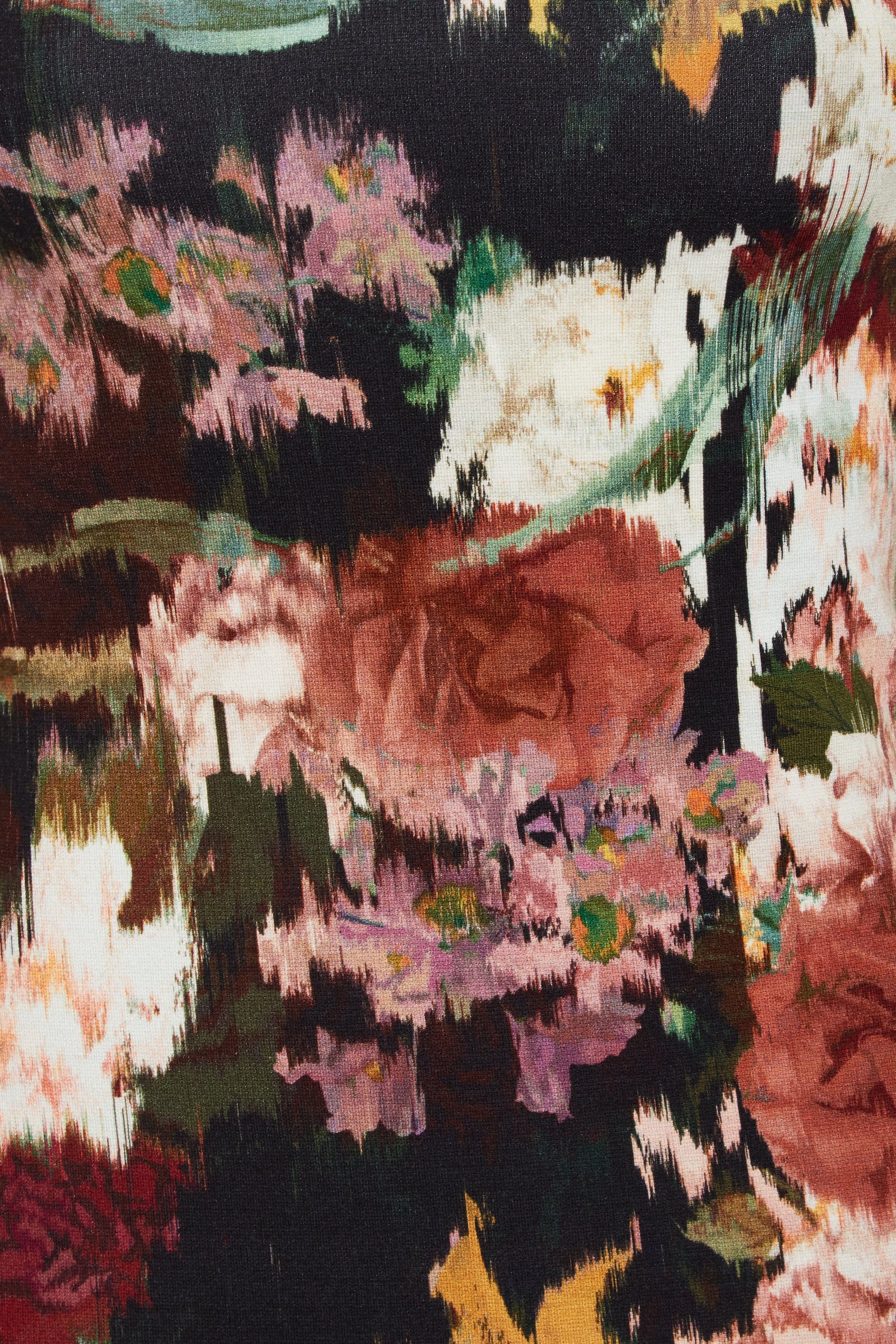 This bodycon dress is fully lined in a luxurious silk blend jersey, providing a smooth fit against the skin. To maintain its beauty, we recommend dry cleaning or gentle hand washing. The dress is available in various colors, including black, peachy pink, and the stunning floral fabric, allowing you to choose the perfect option for your style.