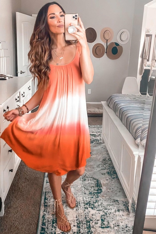 Don't miss out on this fashionable and functional dress that embodies the spirit of summer. Add the Summer Orange Ombre Tie-dye Sleeveless Flowy Dress to your cart today and enjoy the perfect blend of style and comfort!