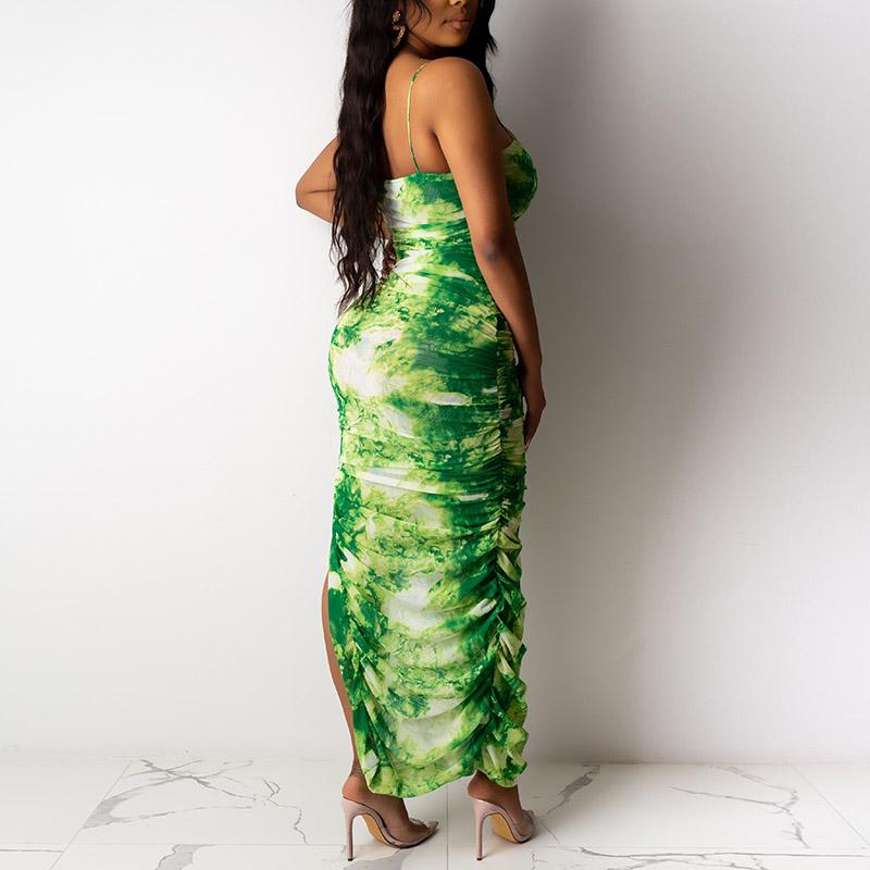 Dropship Tie dye sexy summer dress Women split strapless bodycon long dress