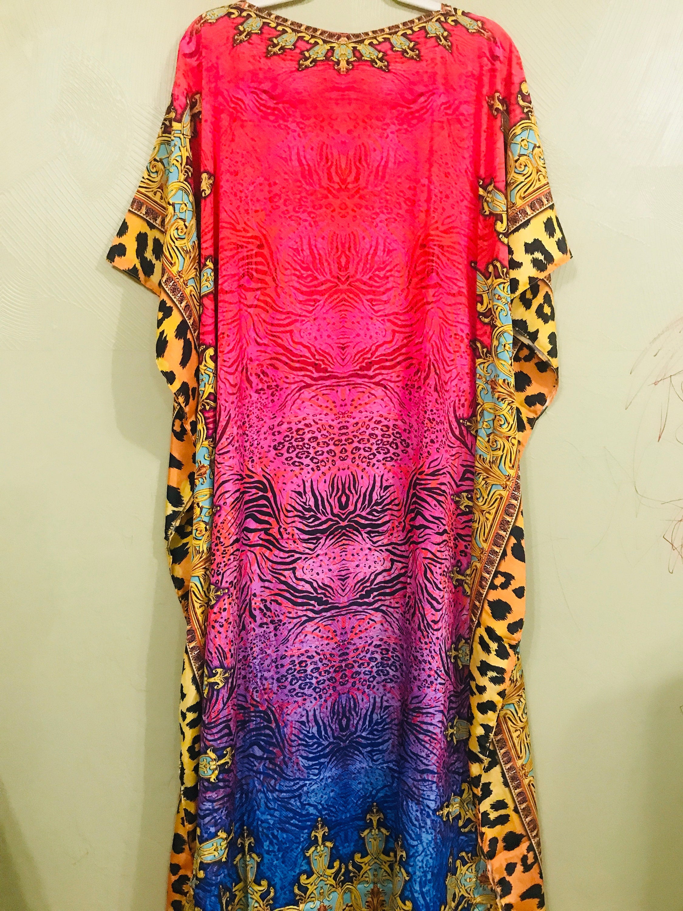 Kaftan dresses are known for their versatility, and the Tropical Caftan Dress is no exception. It can be worn as a stylish beach cover-up or as a chic dress for a summer getaway. The lightweight fabric allows for easy movement, making it perfect for warm weather. Pair it with sandals for a relaxed look or dress it up with accessories for a night out.