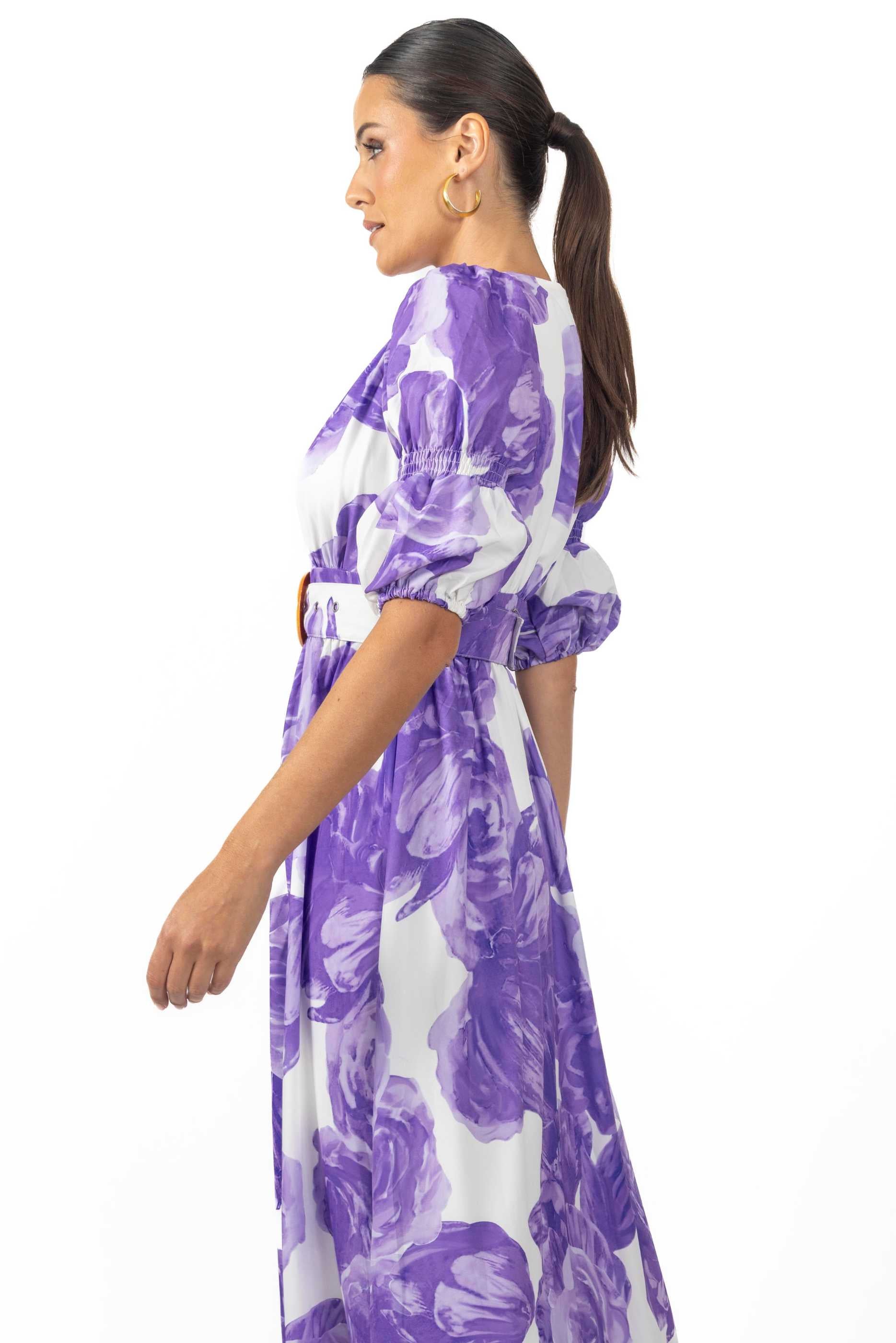 Crafted with high-quality materials, the Verona Maxi dress ensures comfort and durability. The fabric is soft against the skin, allowing for all-day wear without compromising on style. The vibrant lilac color is perfect for spring and summer, making it a versatile choice that can be worn for various occasions, including garden parties, brunches, or evening events.
