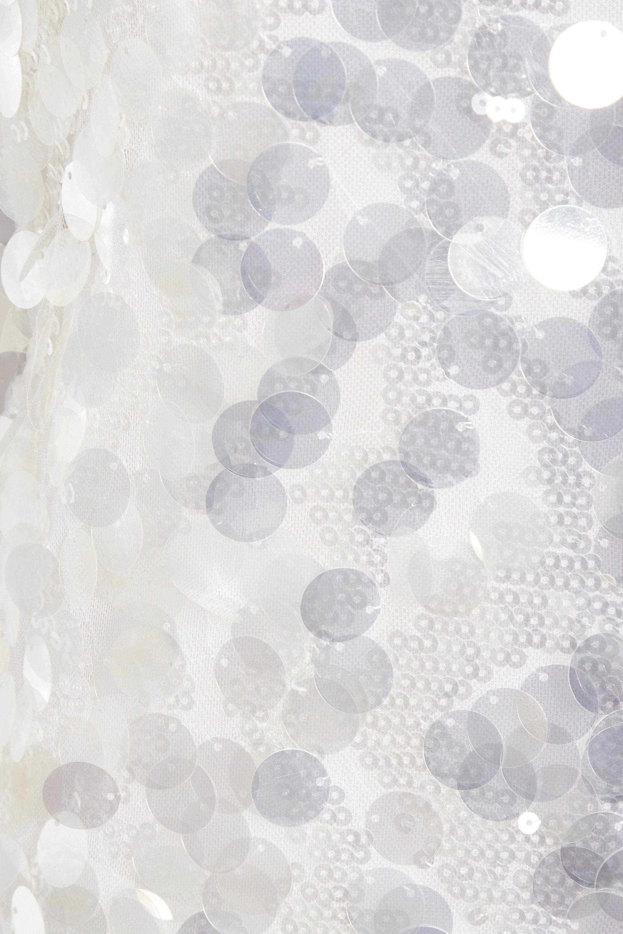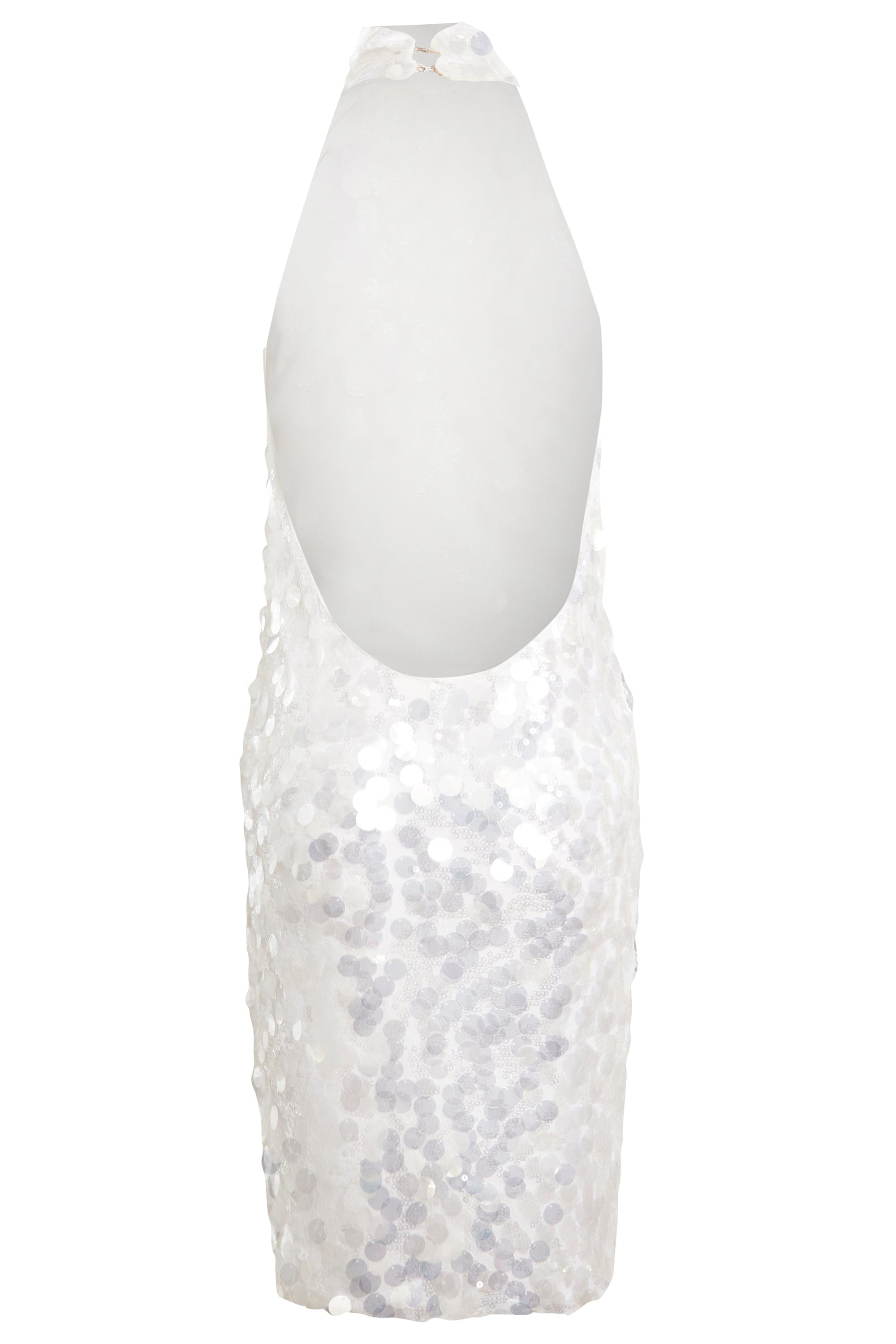 The Nova White Backless Mini Dress is a stunning addition to any wardrobe, perfect for special occasions or a night out. This dress combines elegance and modern style with its high neckline and low-scooping back design. Made from high-quality metallic sequined mesh, it is fully lined with sheer ivory jersey fabric, ensuring both comfort and a flattering fit.