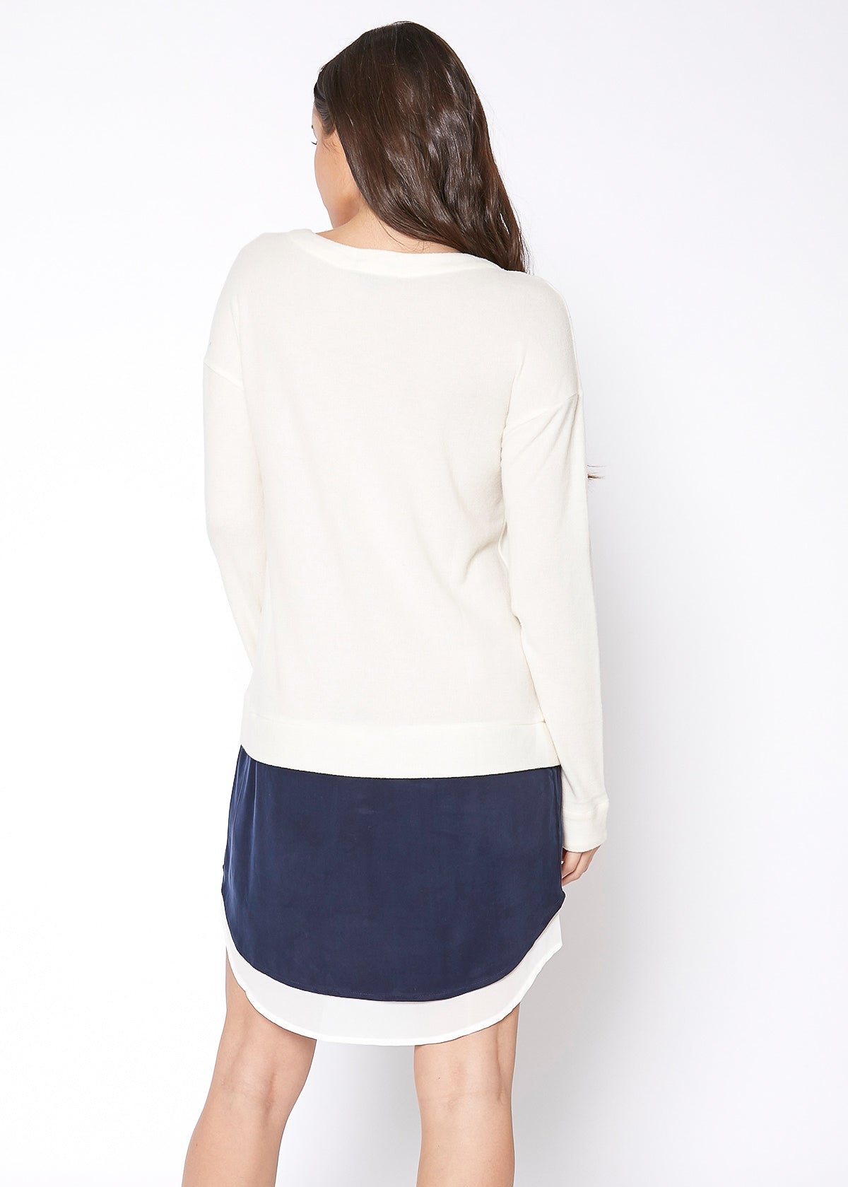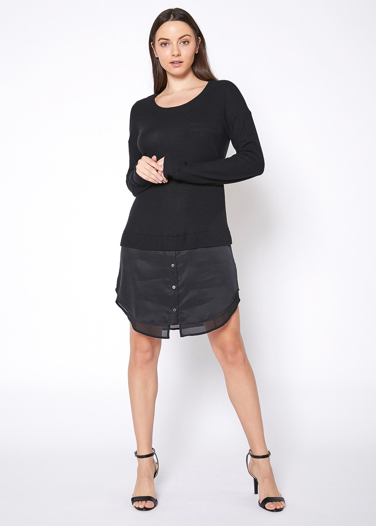 Made in the USA, the Women Twofer Pullover Sweater Dress is constructed from high-quality materials that ensure durability and comfort. The cotton blend fabric is soft against the skin, making it suitable for all-day wear. The polyester content adds strength and helps the dress maintain its shape, while the rayon provides a slight stretch for added comfort.