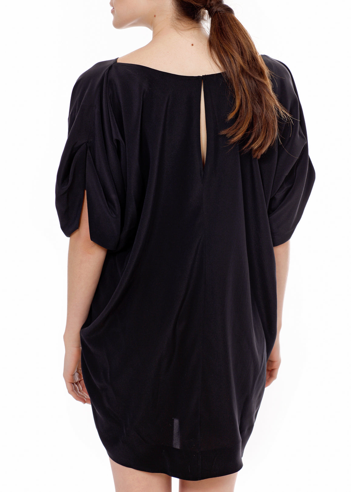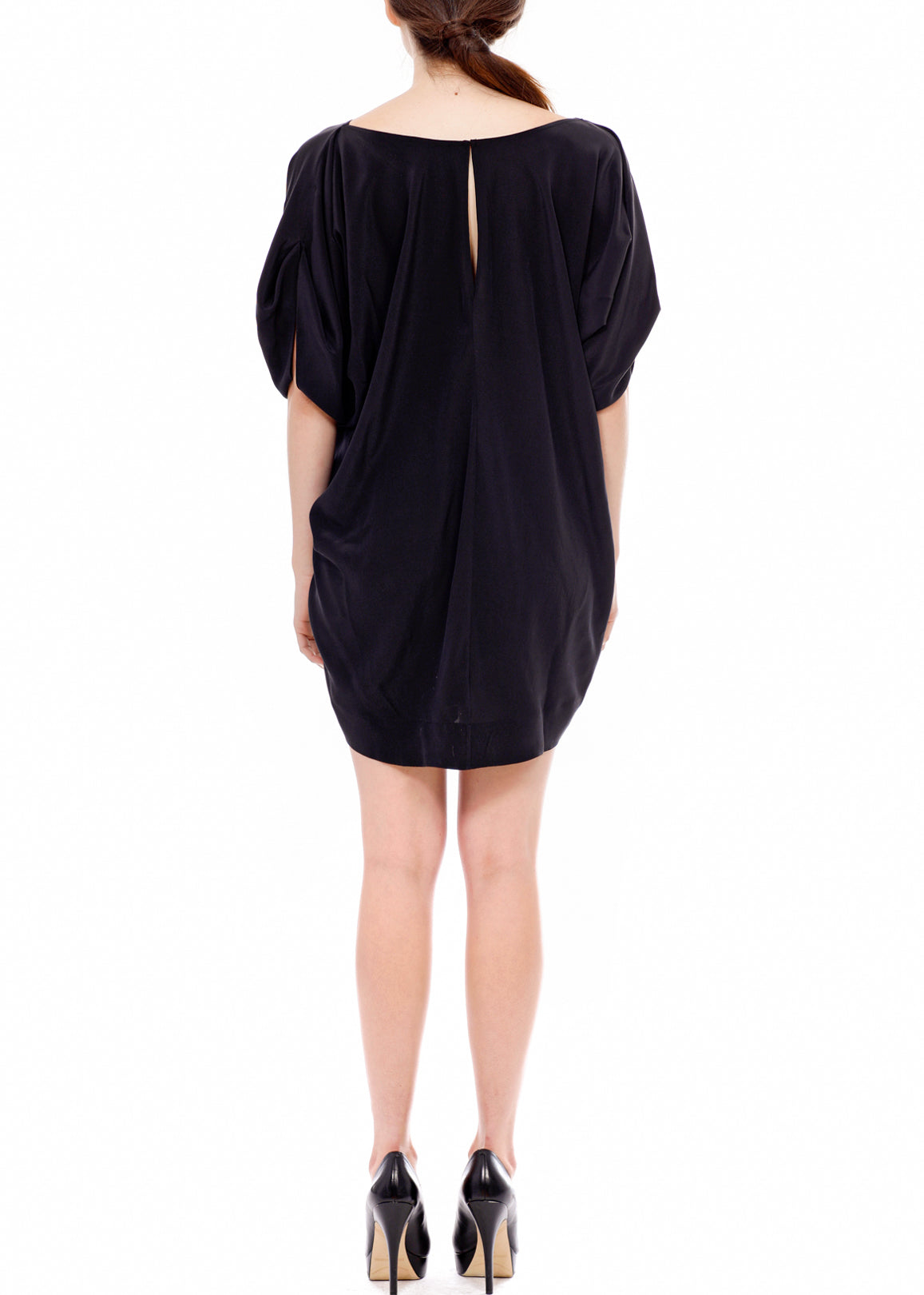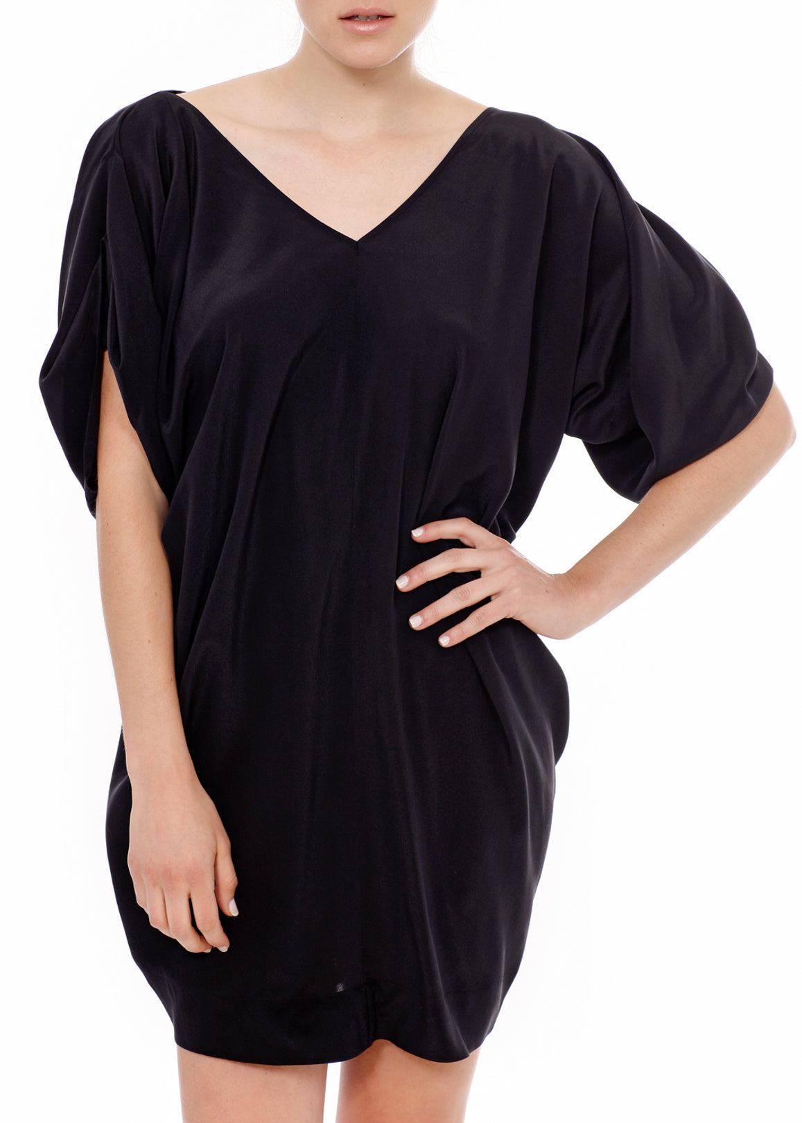 A luxurious Women's 100% Silk Wide V Neck Dress in elegant black, showcasing its soft fabric and stylish design.