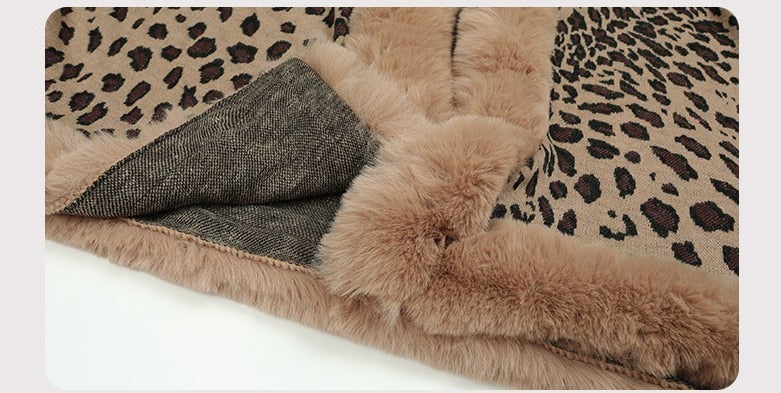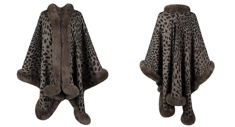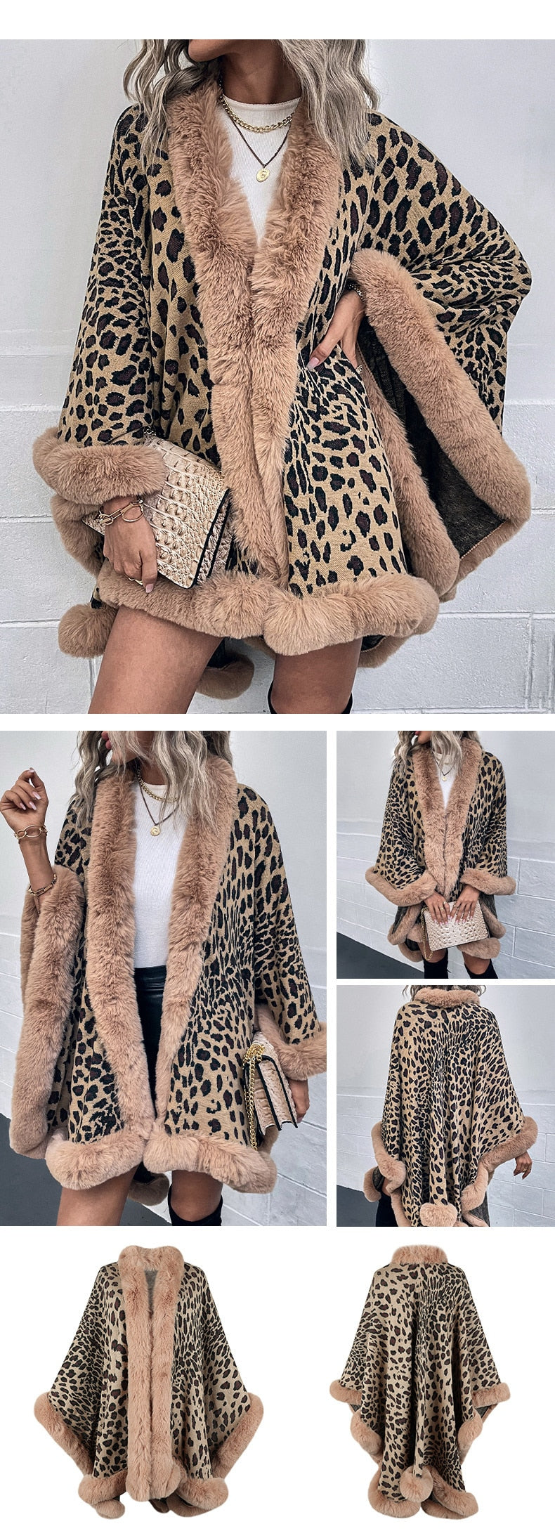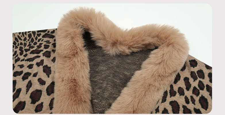 Introducing the 2022 Winter Thick Warm Poncho Fur Collar Cape Coat for women, a perfect blend of style and comfort for the colder months. This vintage-inspired piece is designed to keep you warm while making a fashion statement. The coat features a stunning leopard pattern that adds a touch of wild elegance to your winter wardrobe. Made from high-quality polyester, this poncho is not only thick but also incredibly soft, ensuring you stay cozy during chilly days.