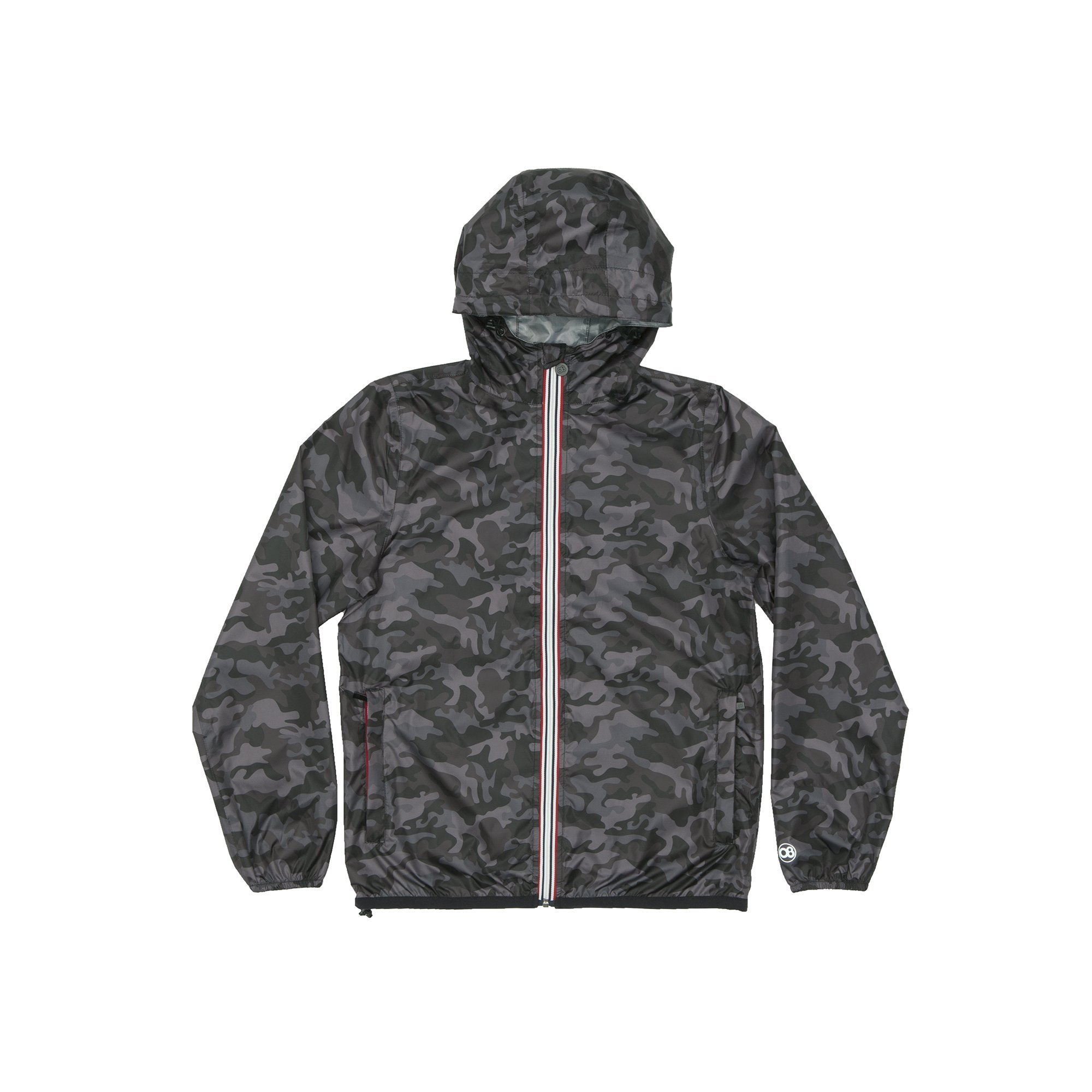Introducing our Black Camo Full Zip Packable Rain Jacket and Windbreaker, the ultimate solution for unpredictable weather. This stylish jacket is designed to keep you dry and comfortable, whether you're hiking, camping, or simply running errands. Made from high-quality waterproof and breathable materials, it ensures that you stay protected from rain while allowing moisture to escape, keeping you comfortable during physical activities.