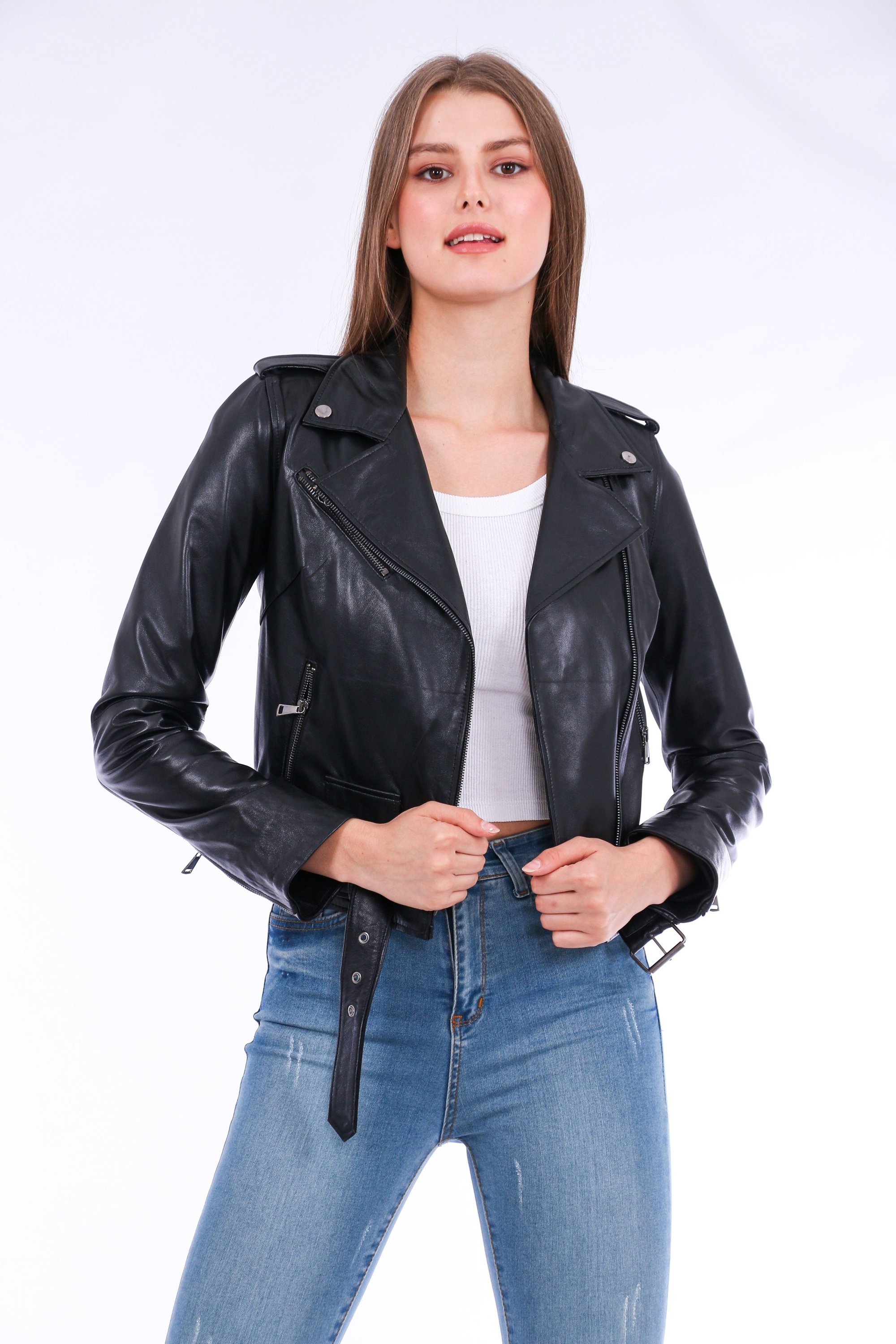 The Castelli Leather Biker Jacket is the epitome of style and comfort, designed for those who appreciate quality and timeless fashion. Made from premium genuine soft sheepskin, this jacket not only looks great but also feels luxurious against the skin. The aniline leather finish enhances its aesthetic appeal, ensuring that it ages beautifully over time, developing a unique character that reflects your personal style.