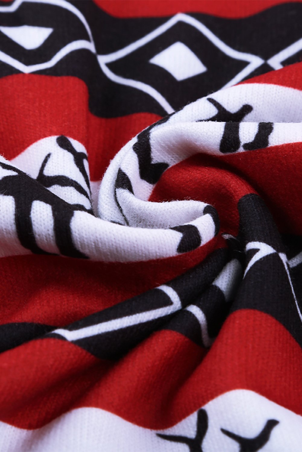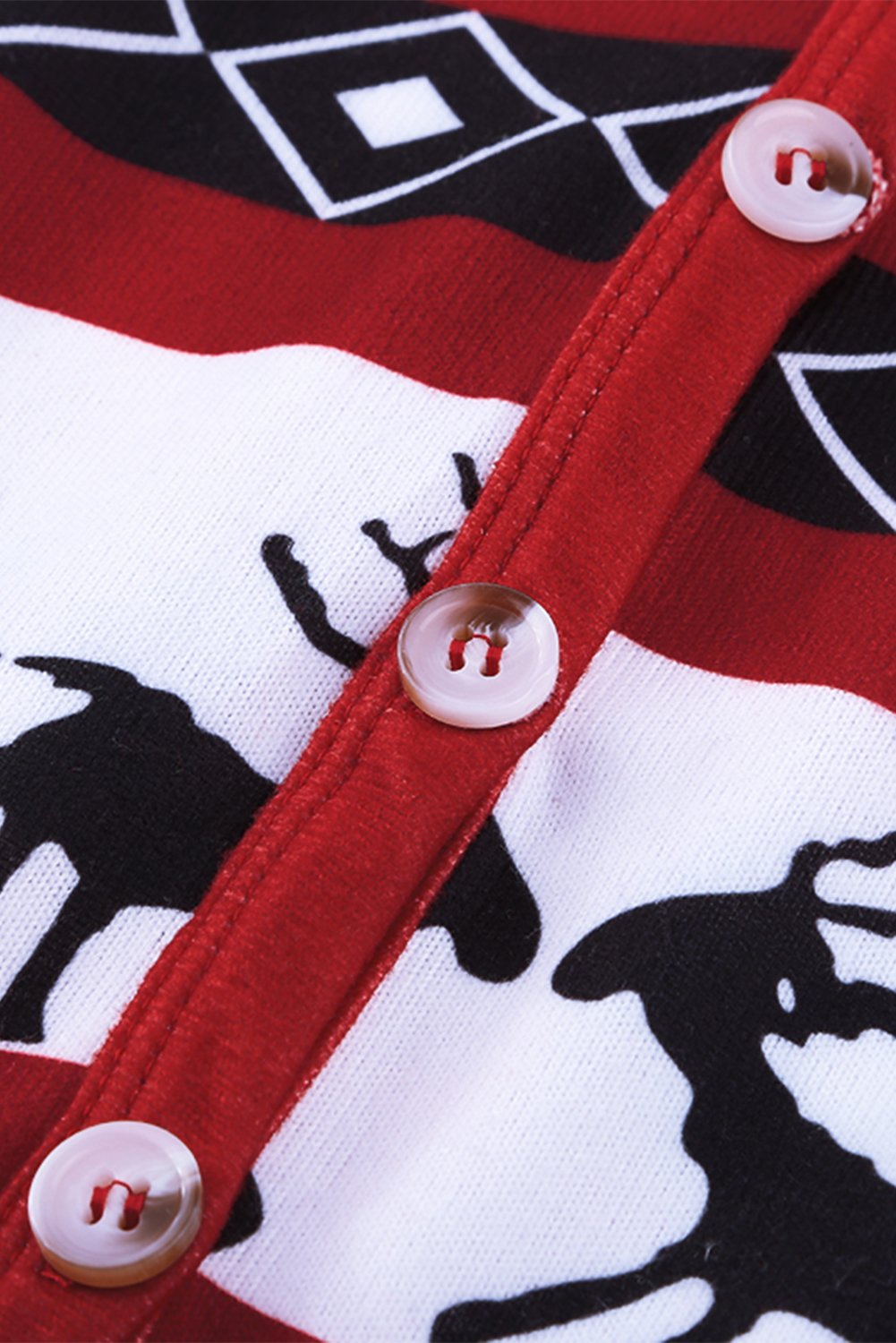 The Christmas Long Cardigan features a beautiful geometric pattern that captures the essence of the holiday season. Its vibrant red color adds a pop of cheer to any outfit, making it an ideal choice for Christmas gatherings, parties, or casual outings. The open front design allows for easy wear, while the mid-thigh hemline provides ample coverage and warmth.