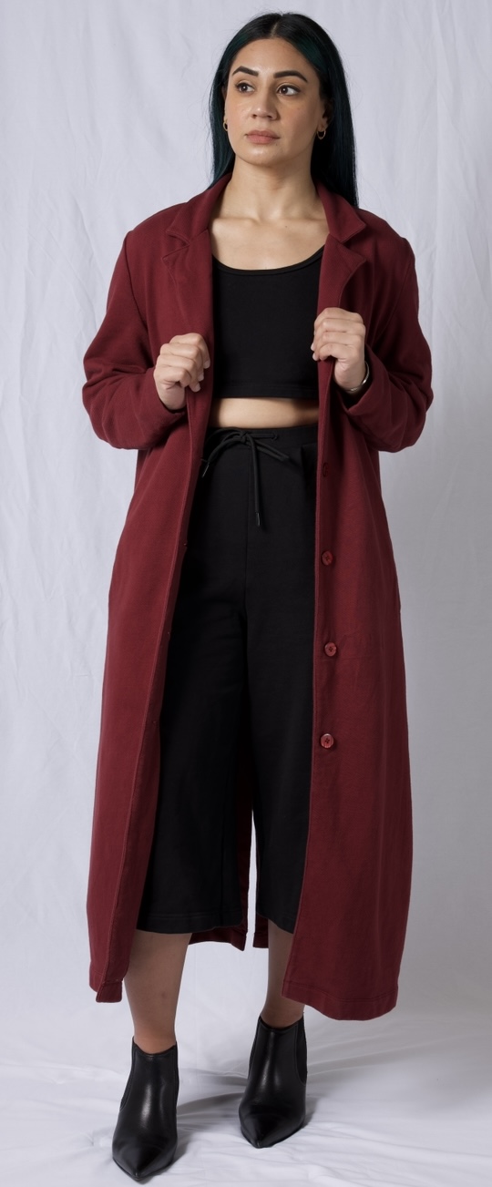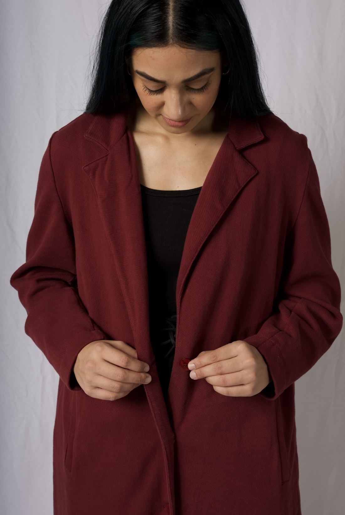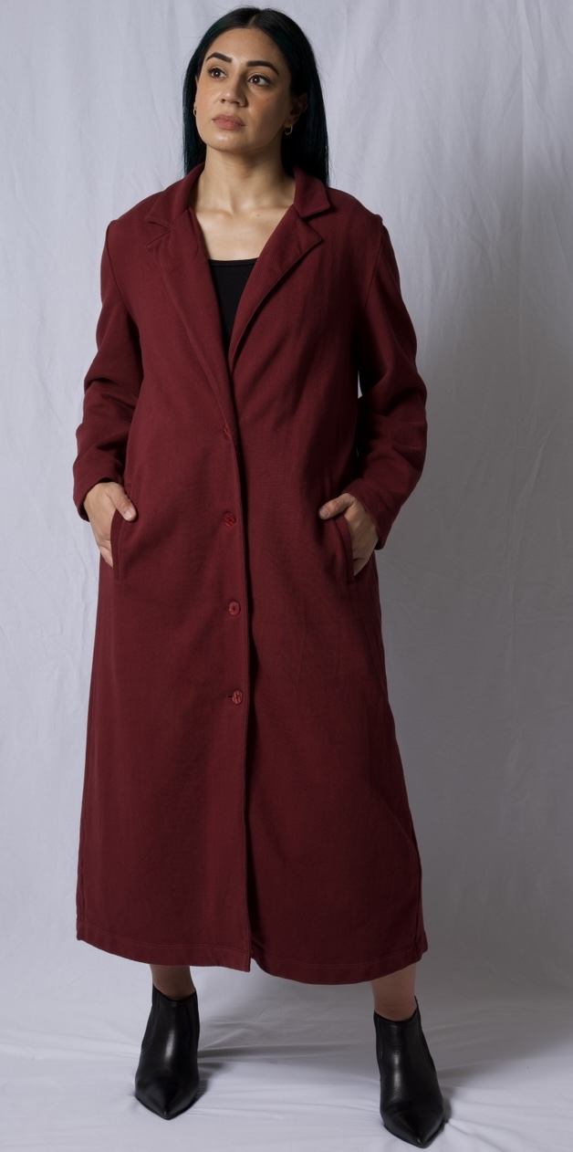 Introducing our exquisite Cotton Coat, a perfect blend of style and comfort. This coat is designed with a drop shoulder sleeve that adds a relaxed yet fashionable touch to your outfit. The pearl button closure not only enhances its elegance but also provides a secure fit, making it a versatile addition to your wardrobe.