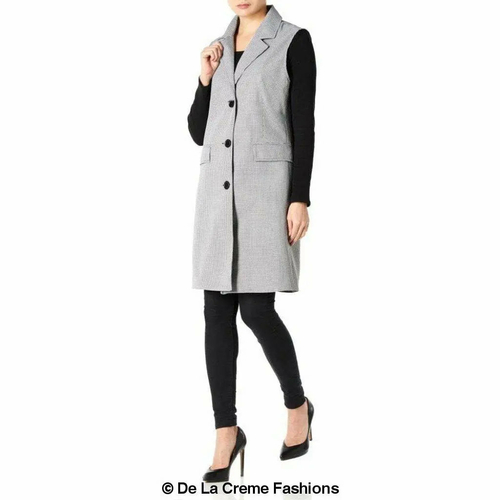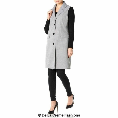 Dropship De La Creme - Womens Spring/Summer Sleeveless Hip Length Blazer Coat