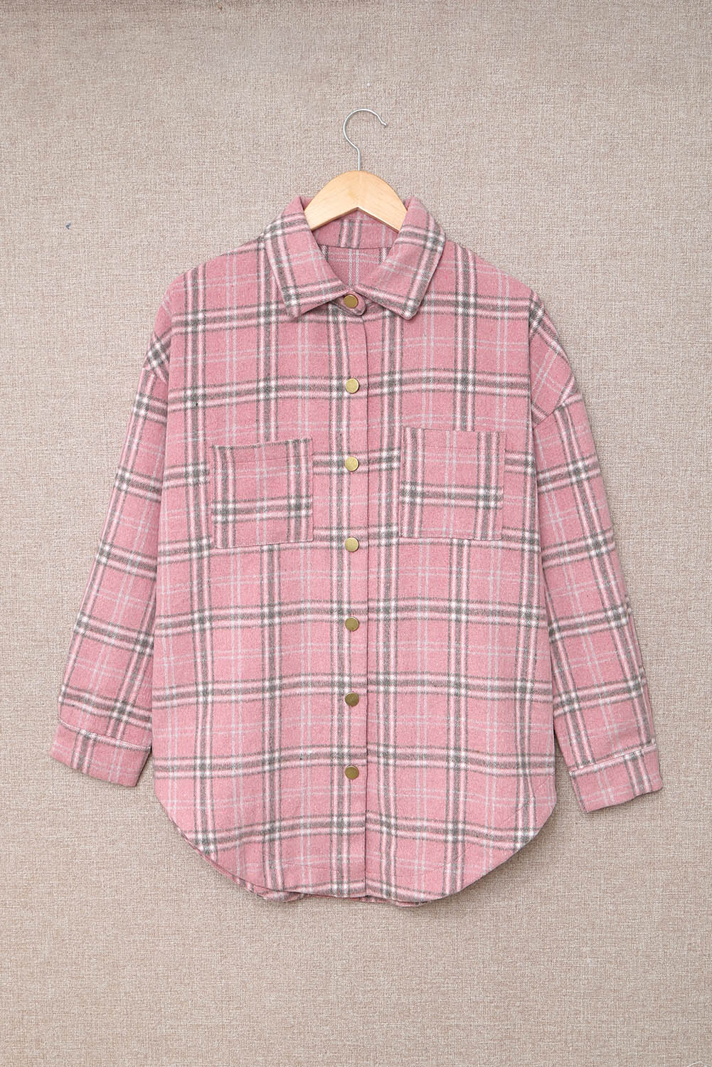 Introducing the Fall Pink Plaid Shacket, a must-have addition to your winter wardrobe. This stylish outerwear piece combines comfort and fashion, making it perfect for various occasions. The shacket features a beautiful pink plaid pattern that is both timeless and trendy, ensuring you stay chic throughout the season.