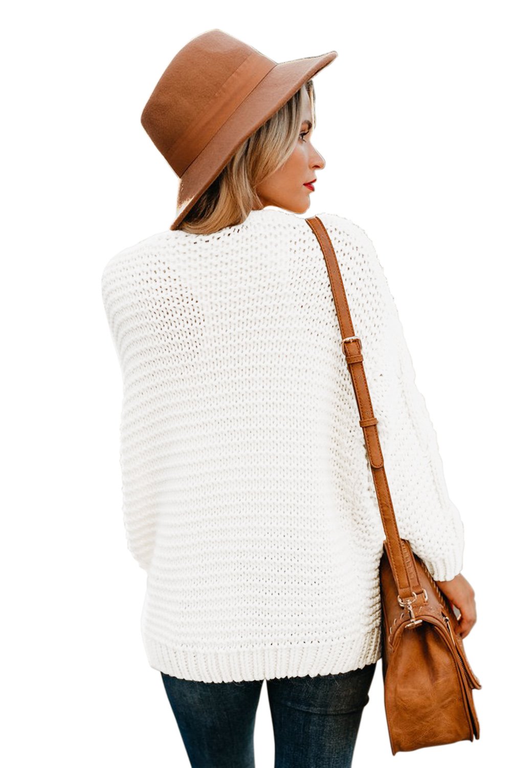 In summary, the Fashion White Chunky Wide Long Sleeve Knit Cardigan is an essential item for anyone looking to stay warm and fashionable this winter. With its chunky knit, relaxed fit, and stylish design, it's perfect for layering and can be worn on various occasions. Make sure to grab yours today and enjoy the comfort and style it brings to your winter outfits.