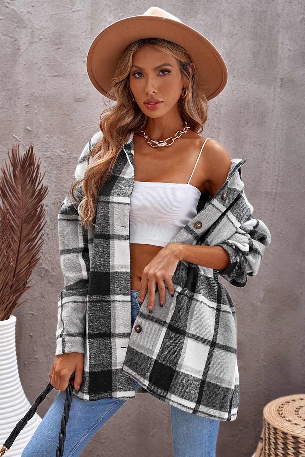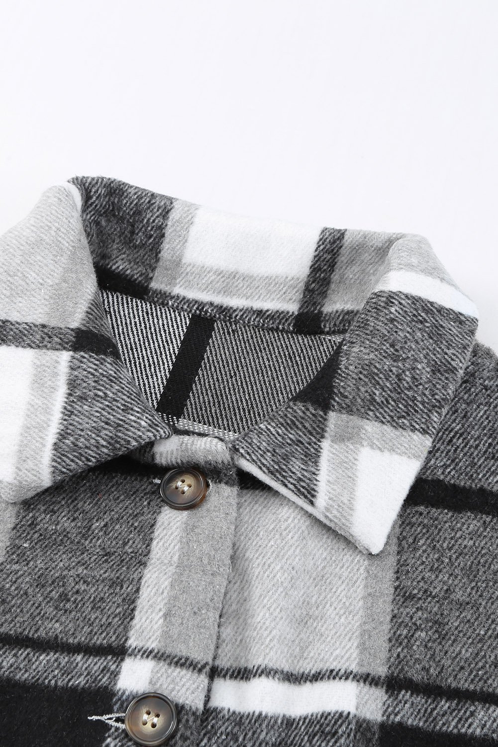 Don't miss out on this essential winter jacket! Embrace the cold weather with confidence and style by adding the Gray Plaid Print Shirt Jacket to your collection today.