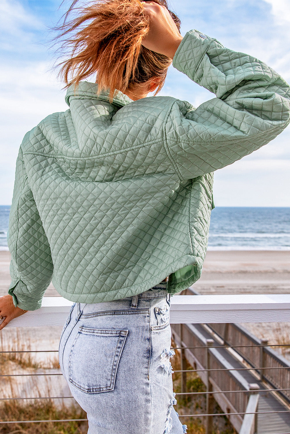 In summary, the Green Quilted Cropped Jacket is a fashionable and functional choice for winter. With its unique design, convenient features, and flattering fit, it is sure to become a favorite in your wardrobe. Don't miss out on the opportunity to own this chic jacket that combines style and practicality.