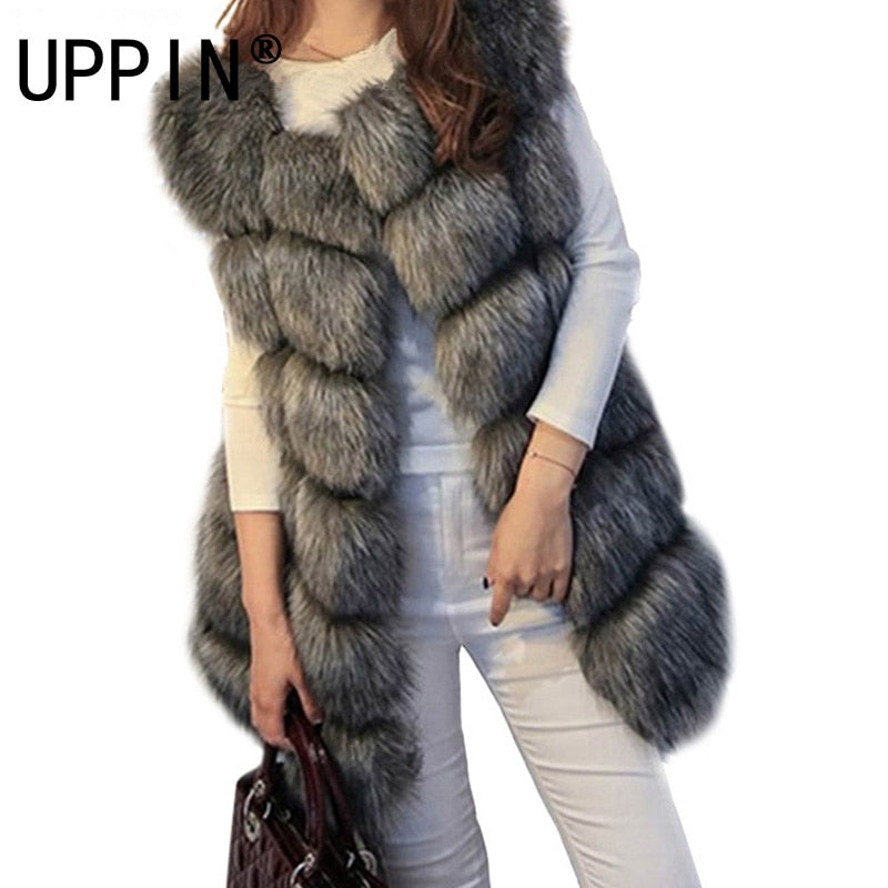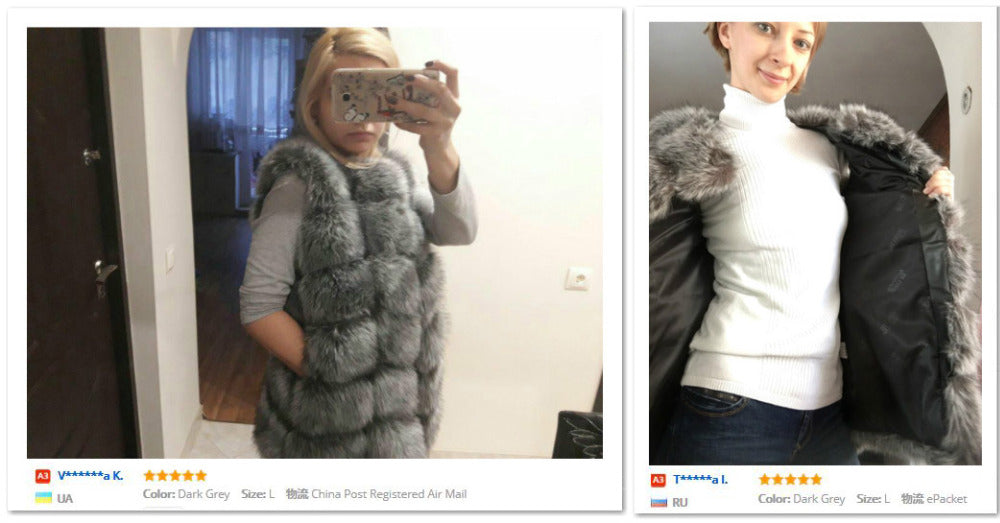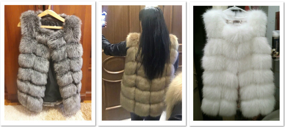 Luxurious high-quality faux fox fur vest coat for women in various colors, showcasing its elegant design and premium materials.