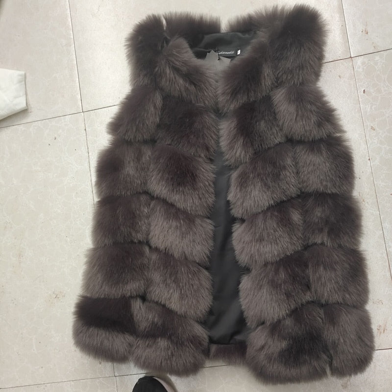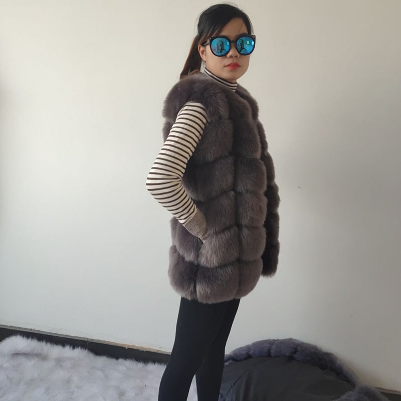 Dropship High quality Fur Vest coat Luxury Faux Fox Warm Women Coat Vests